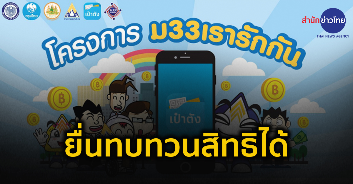 กรุงเทพฯ 21 ก.พ.-“ม33เรารักกัน” ลงทะเบียนแล้ว แต่ไม่ผ่าน ไม่ต้องกังวล ยื่นทบทวนสิทธิได้ผ่านเว็บไซต์ www. ม33เรารักกัน.com ตั้งแต่วันที่ 15-28 มีนาคม 2564