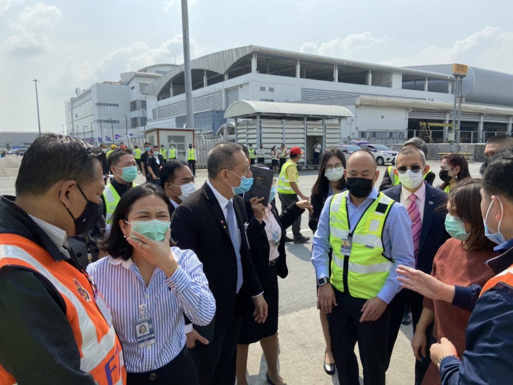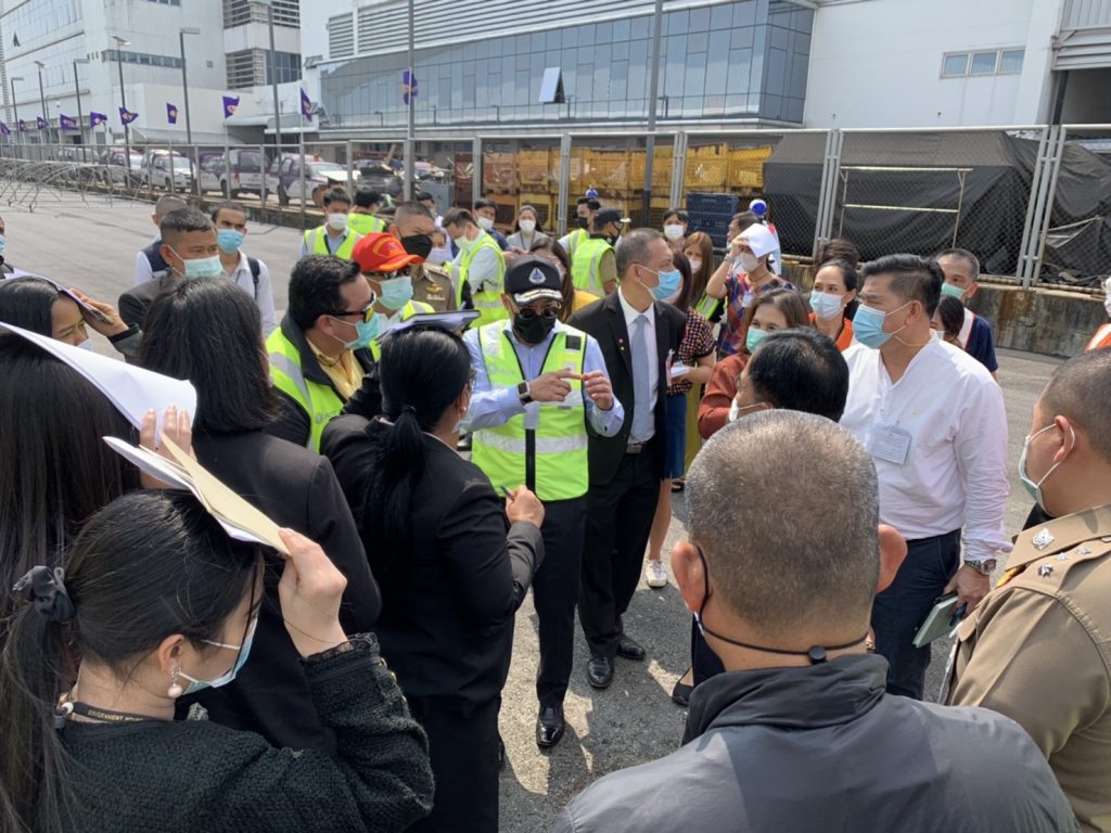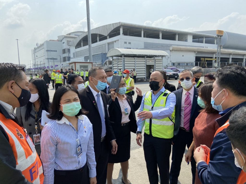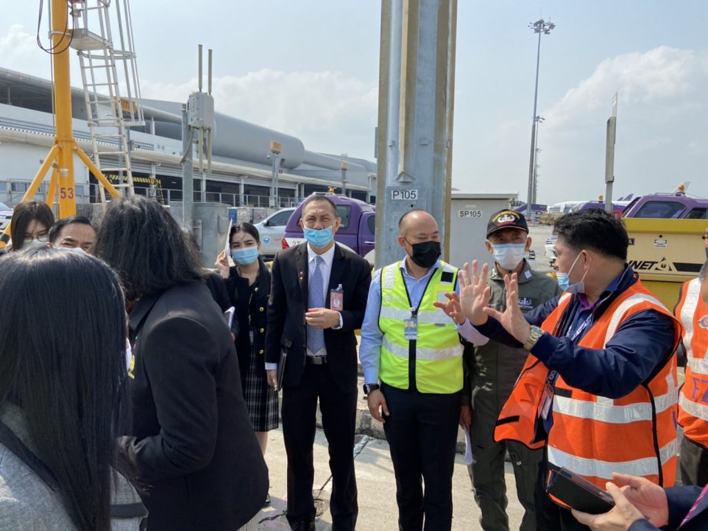 กรุงเทพฯ 23 ก.พ.-รอง ผอ.ท่าอากาศยานสุวรรณภูมิ นำเจ้าหน้าที่ซักซ้อมขั้นตอนและตรวจความเรียบร้อย ก่อนมีพิธีการรับวัคซีนซิโนแวค พรุ่งนี้