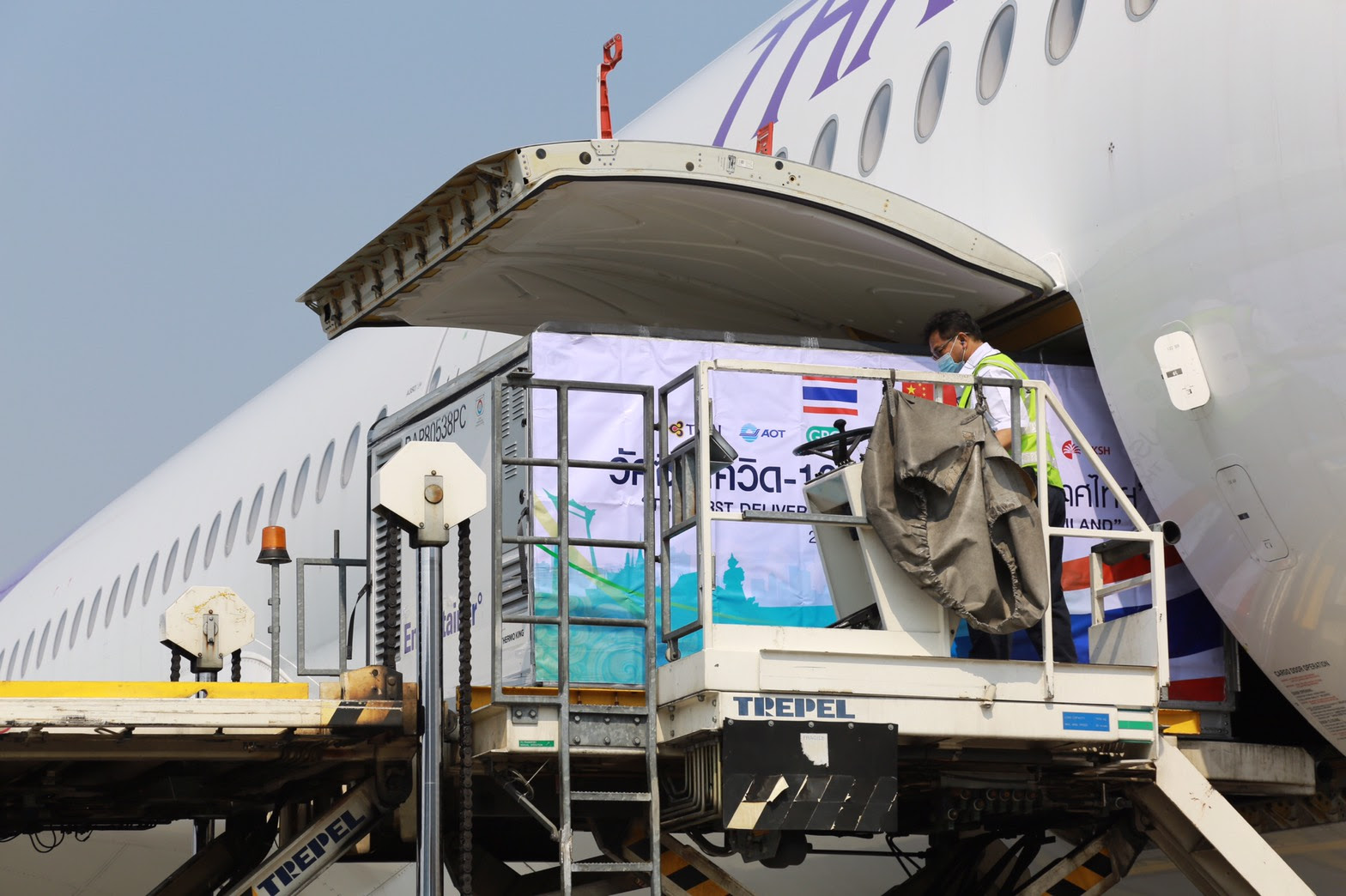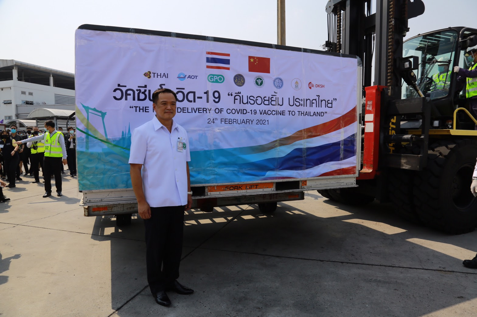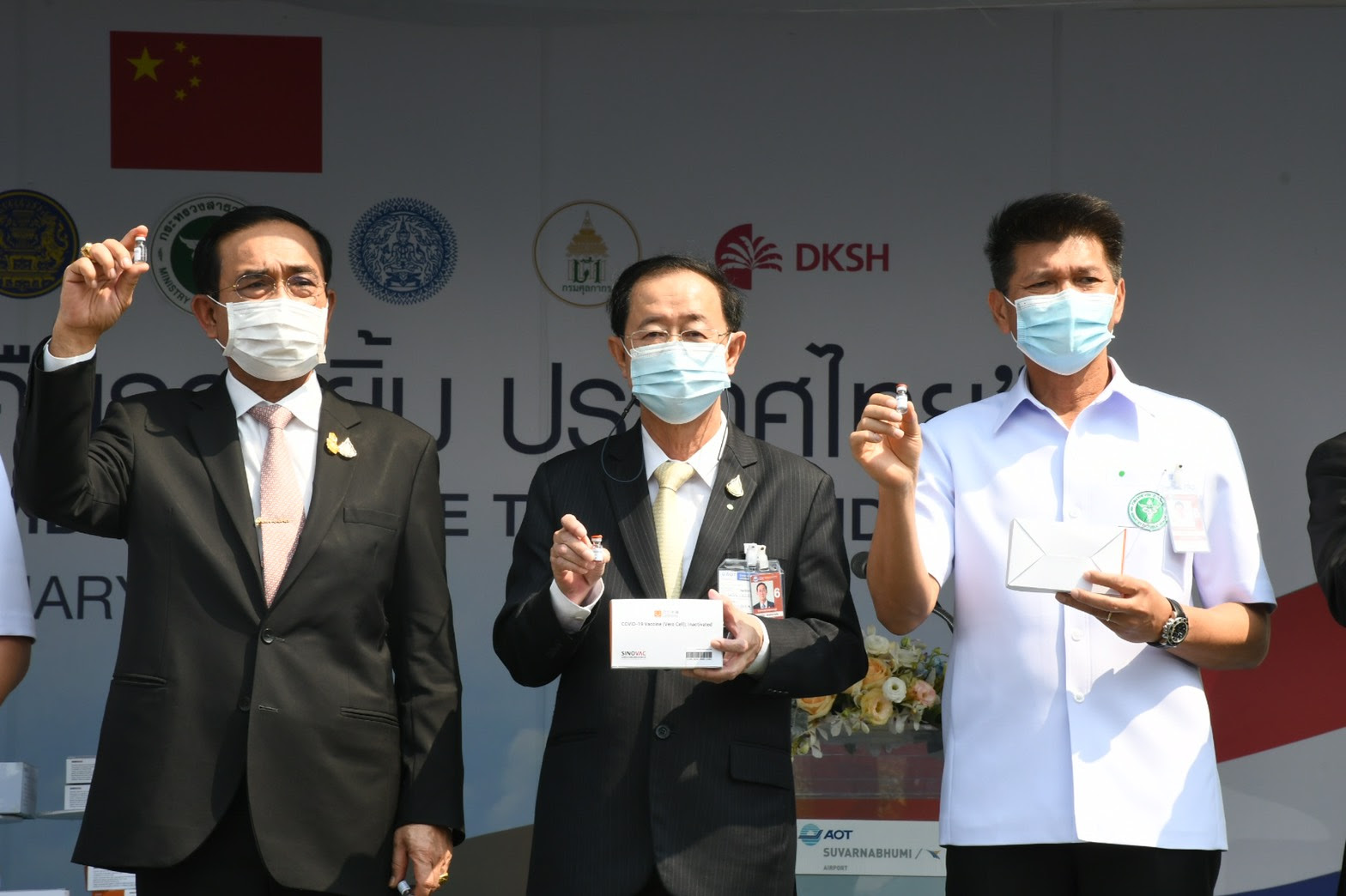 วันนี้ (24 ก.พ.) ที่เขตปลอดอากรและคลังสินค้า ท่าอากาศยานสุวรรณภูมิ จ.สมุทรปราการ พลเอก ประยุทธ์ จันทร์โอชา นายกรัฐมนตรี เป็นประธาน รับวัคซีนโควิด19 จากสาธารณรัฐประชาชนจีน “วัคซีนโควิด 19 คืนรอยยิ้มประเทศไทย” ที่ขนส่งโดยการบินไทยเที่ยวบิน TG 675 เส้นทางปักกิ่ง-กรุงเทพฯ โดยมีนายอนุทิน ชาญวีรกูล รองนายกรัฐมนตรีและรัฐมนตรีว่าการกระทรวงสาธารณสุข ดร.สาธิต ปิตุเตชะ รัฐมนตรีช่วยว่าการกระทรวงสาธารณสุข นพ.เกียรติภูมิ วงศ์รจิต ปลัดกระทรวงสาธารณสุขและประธานกรรมการองค์การเภสัชกรรม Mr.Yang Xin อุปทูตรักษาการแทนเอกอัครราชทูตจีนประจำประเทศไทย และคณะผู้บริหารของทุกหน่วยงาน เข้าร่วมในพิธี