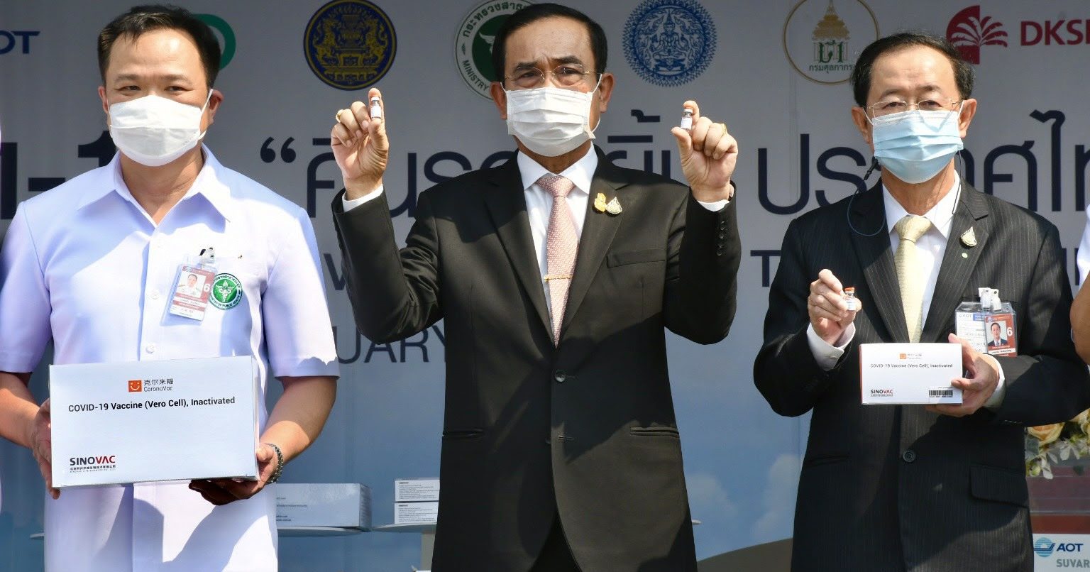 พลเอกประยุทธ์ จันทร์โอชา นายกรัฐมนตรี กล่าวว่า วันนี้ วัคซีนลอตแรกที่รัฐบาลได้มอบให้กระทรวงสาธารณสุข โดยองค์การเภสัชกรรมจัดหาเร่งด่วน จำนวน 2 ล้านโด๊ส รองรับการระบาดโรคโควิด 19 ระลอกใหม่ เพิ่มจากแผนจัดหาเดิมที่กรมควบคุมโรคสั่งซื้อจากบริษัท Astra Zeneca โดยวัคซีนล็อตนี้ เกิดจากการเจรจากับ บริษัท ซิโนแวค ไลฟ์ ซายน์ จำกัด สาธารณรัฐประชาชนจีน (Sinovac Life Sciences Co.,Ltd., People’s Republic of China) ซึ่งเป็นบริษัทที่สามารถส่งวัคซีนให้ประเทศไทยได้ภายในเดือนกุมภาพันธ์ 2564 ภายใต้การประสานงานจัดหา โดยสถานทูตสาธารณรัฐประชาชนจีน ประจำประเทศไทย และมอบให้องค์การเภสัชกรรม เป็นผู้ดำเนินการนำเข้า ขึ้นทะเบียนยากับสำนักงานคณะกรรมการอาหารและยาและกระจายไปสู่ประชาชน ฉีดให้กลุ่มเป้าหมายคนละ 2 โดส ห่างกัน 21 วัน และในเดือนมิถุนายนจะได้รับวัคซีนของแอสตราเซนเนกา 61 ล้านโดส เพื่อฉีดให้กับทุกคนที่อยู่บนแผ่นดินไทยโดยสมัครใจ สร้างภูมิคุ้มกันโรค ฟื้นเศรษฐกิจ คืนรอยยิ้มให้กับประเทศไทย