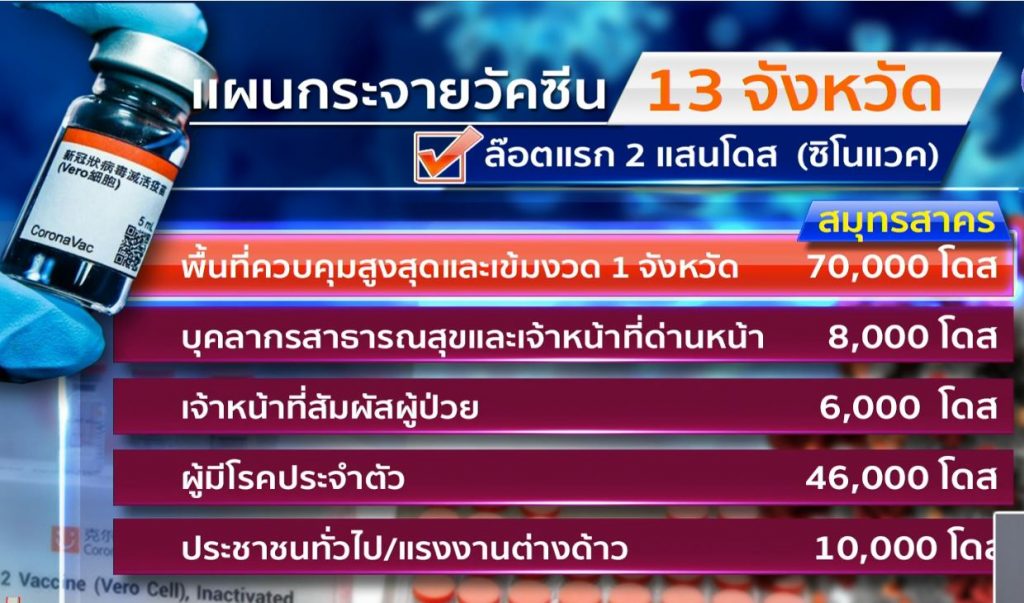 นพ.โสภณ เมฆธน ประธานคณะอนุกรรมการบริหารจัดการวัคซีนโควิด-19 กล่าวถึงการบริหารจัดการวัคซีนโควิด-19 หลังวัคซีนของซิโนแวค ผ่านการตรวจตามมาตรฐานของกรมวิทยาศาสตร์การแพทย์แล้ว หลังจากนั้นองค์การเภสัชกรรมจะกระจายวัคซีนไปตามโรงพยาบาลต่างๆ ใน 13 จังหวัด ภายในเสาร์อาทิตย์นี้ ส่วนวัคซีนของบริษัทแอสตราเซเนกา ก็ต้องผ่านการตรวจสอบเช่นกัน กรมวิทยาศาสตร์การแพทย์จะเป็นคนดำเนินการ