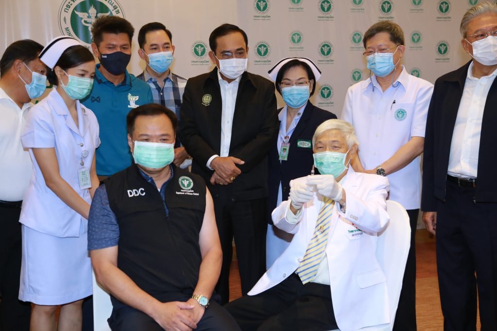 กรุงเทพฯ 28 ก.พ.-‘อนุทิน’ ประเดิมวัคซีนโควิด-19 เข็มแรกของไทย โดย ‘หมอยง’ เป็นผู้ฉีดให้ ส่วนนายกรัฐมนตรี มาร่วมให้กำลังใจ เนื่องจากไม่เข้าเกณฑ์รับวัคซีนจากซิโนแวคอายุเกิน 60 ปี