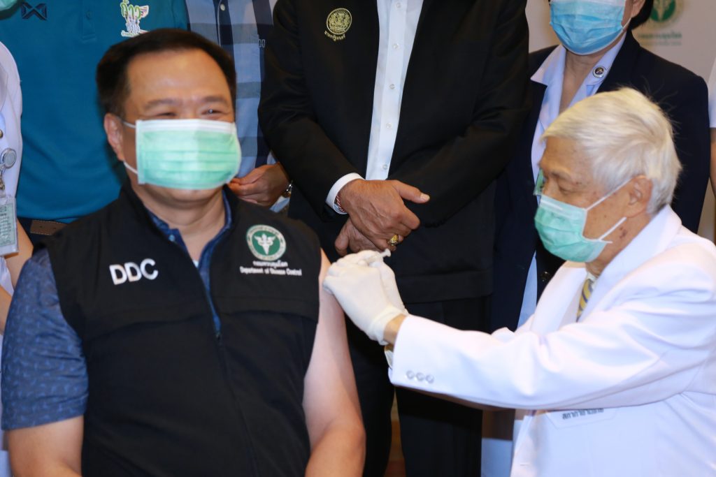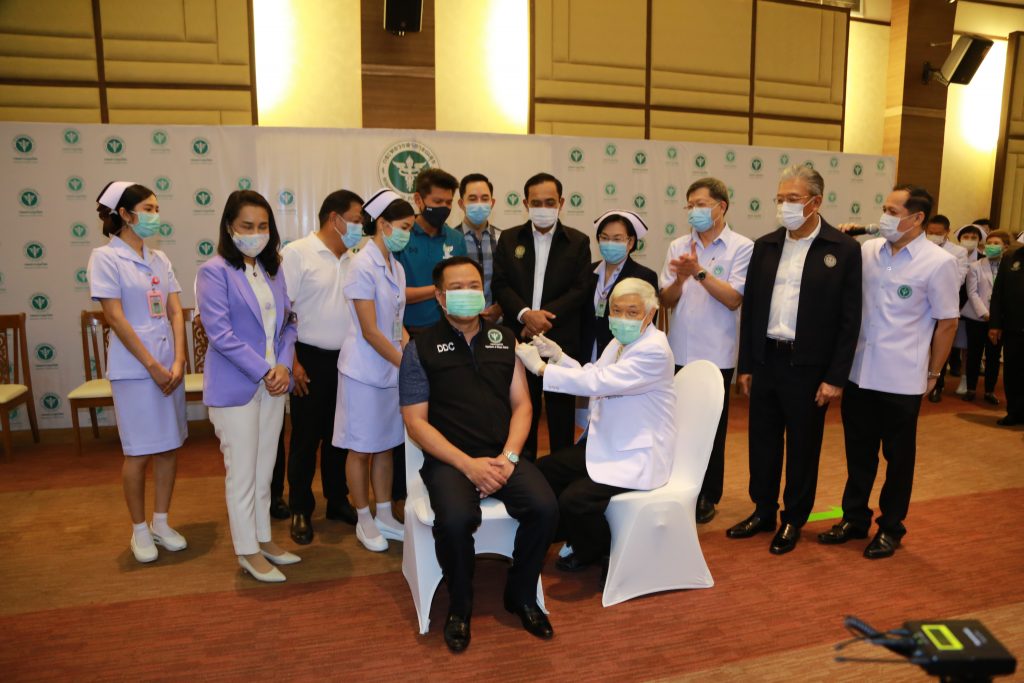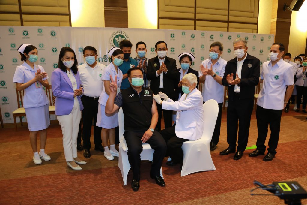 นายอนุทิน ชาญวีรกูล รองนายกรัฐมนตรีและ รมว.สาธารณสุข เข้ารับการฉีดวัคซีนโควิด-19 เข็มแรกของประเทศไทย โดยนายแพทย์ ยง ภู่วรวรรณ เป็นผู้ฉีดให้ จากนั้นตามมาด้วย นายสาธิต ปิตุเตชะ รมช.สาธารณสุข, นายอิทธิพล คุณปลื้ม รมว.วัฒนธรรม, นพ.เกียรติภูมิ วงศ์รจิต ปลัดกระทรวงสาธารณสุข, นายแพทย์โอภาส การย์กวินพงศ์ อธิบดีกรมควบคุมโรค และ นางกนกวรรณ วิลาวัลย์ รมช.ศึกษาธิการ ซึ่งมีอายุไม่ถึง 60 ปี สมัครใจฉีดวัคซีนโควิดลอตแรกจากซิโนแวค