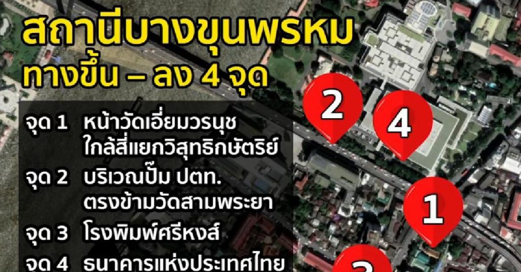(4) ตำแหน่งทางขึ้น-ลง หมายเลข 4 ตั้งอยู่บริเวณธนาคารแห่งประเทศไทย ถนนวิสุทธิกษัตริย์