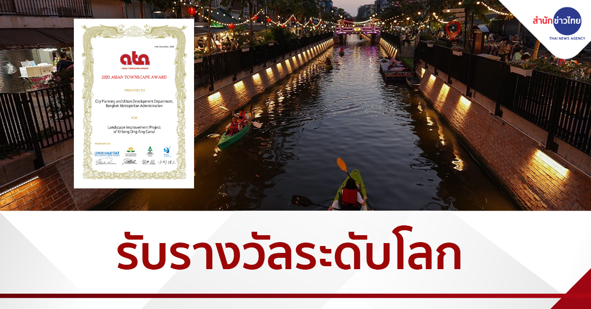 กรุงเทพฯ 13 มี.ค.-“คลองโอ่งอ่าง” โด่งดังไปทั่วโลก ได้รับรางวัล 2020 Asian Townscape Awards จาก UN-Habitat Fukuoka 1 ใน 6 ประเทศ ที่ได้รับการคัดเลือกให้เป็นต้นแบบการปรับปรุงภูมิทัศน์