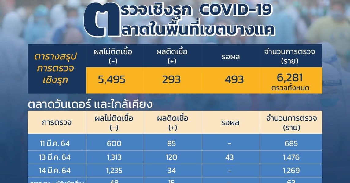 เพจเฟซบุ๊ก “เอิร์ธ พงศกร ขวัญเมือง” ของ ร.ต.อ.พงศกร ขวัญเมือง โฆษก กทม. โพสต์อัพเดทผลการตรวจเชิงรุกในตลาดพื้นที่เขตบางแค ว่า กทม.ตรวจค้นหาผู้ติดเชื้อเชิงรุกให้กับประชาชนในพื้นที่บางแคและพื้นที่ใกล้เคียงเพิ่ม พบผู้ติดเชื้อเพิ่ม 69 คน