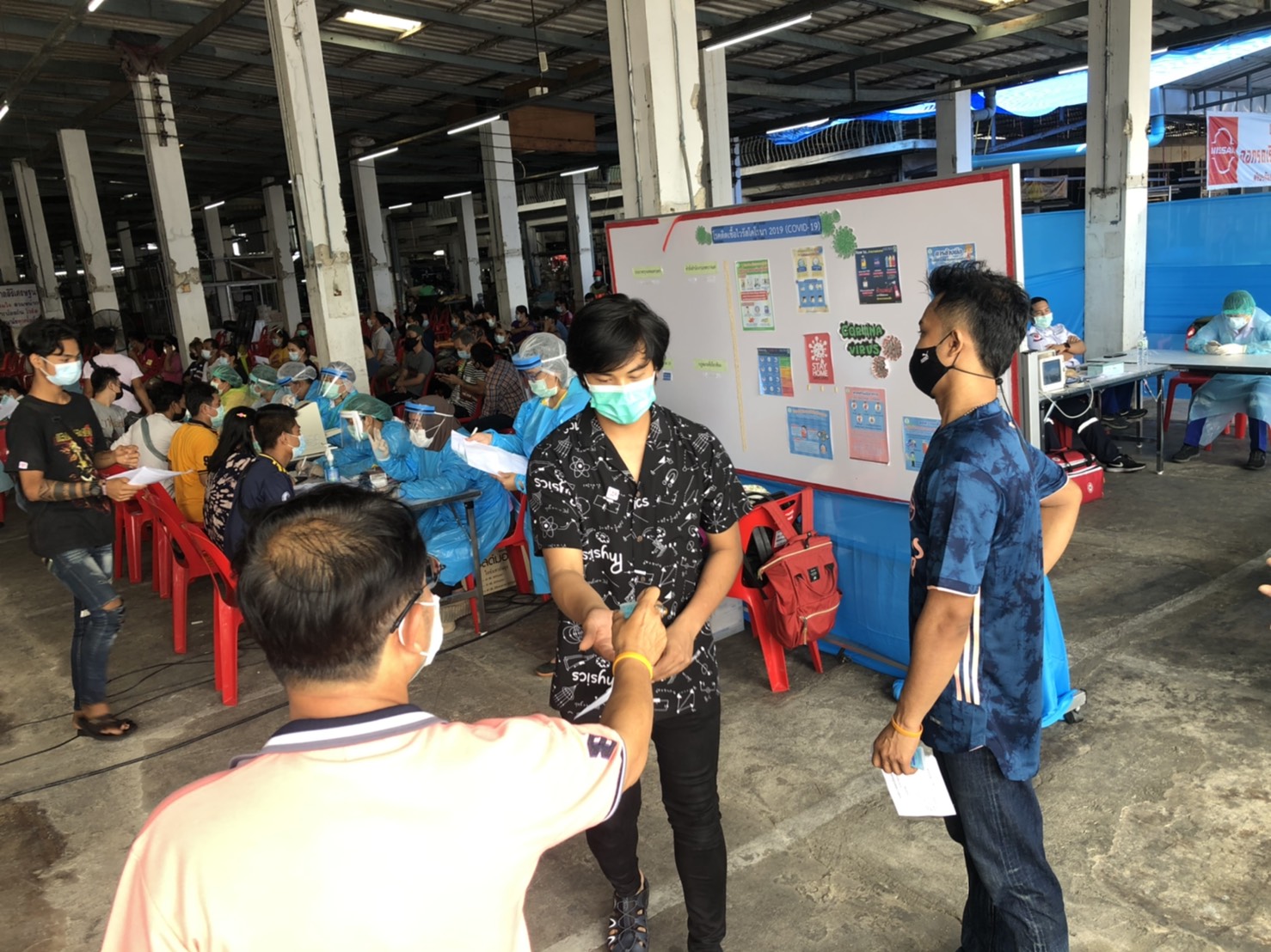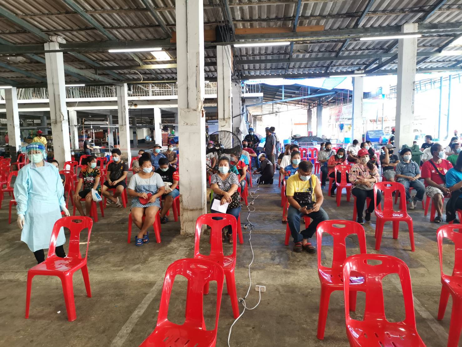 รองปลัดกรุงเทพมหานคร กล่าวด้วยว่าจากการให้บริการวัคซีนเมื่อวานนี้พบปัญหาอุปสรรคและได้ดำเนินการแก้ไขให้ดียิ่งขึ้น เช่น การปรับสถานที่เพื่อรองรับการให้บริการให้คล่องตัวมากขึ้น ได้แก่ การเพิ่มจุดลงทะเบียน การขยายที่นั่งพักสังเกตอาการโดยเพิ่มเก้าอี้จาก 200 ตัว เป็น 300 ตัว เพื่อรองรับอย่างเพียงพอ และจัดเพิ่มพัดลมให้มีอากาศถ่ายเท เปิดพัดลมดูดอากาศด้านบน และมีการเว้นระยะห่างระหว่างกันตามหลัก social distancing และจัดเจ้าหน้าที่เก็บขยะติดเชื้อนำไปทิ้งเพื่อกำจัดขยะติดเชื้อทุกวันเพื่อสร้างความมั่นใจให้กับประชาชน นอกจากนี้ยังได้ประสานขอล่ามภาษาพม่าเพิ่มเติมจากมูลนิธิศุภมิตรแห่งประเทศไทยเพื่อสื่อสารกับแรงงานชาวเมียนมาร์ที่เป็นกลุ่มเสี่ยงด้วย