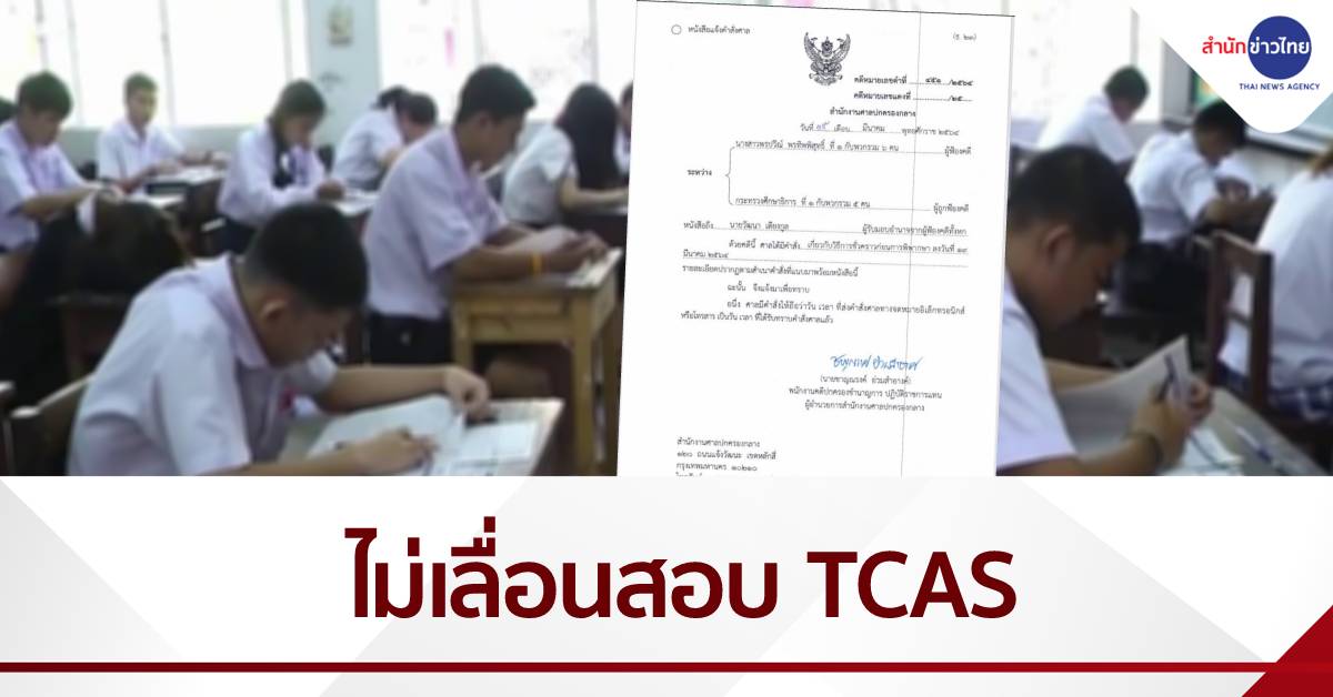 ศาลปกครอง 19 มี.ค.-นักเรียน ม.6 ต้องสอบ TCAS เหมือนเดิม หลังศาลปกครองไม่คุ้มครองยกคำขอเลื่อนสอบ ข้อเท็จจริงยังไม่ชัดว่าปฏิทินสอบ TCAS ไม่ชอบด้วยกฎหมาย หากเลื่อนกระทบคนจำนวนมาก เหตุกระชั้นชิดเกินไป