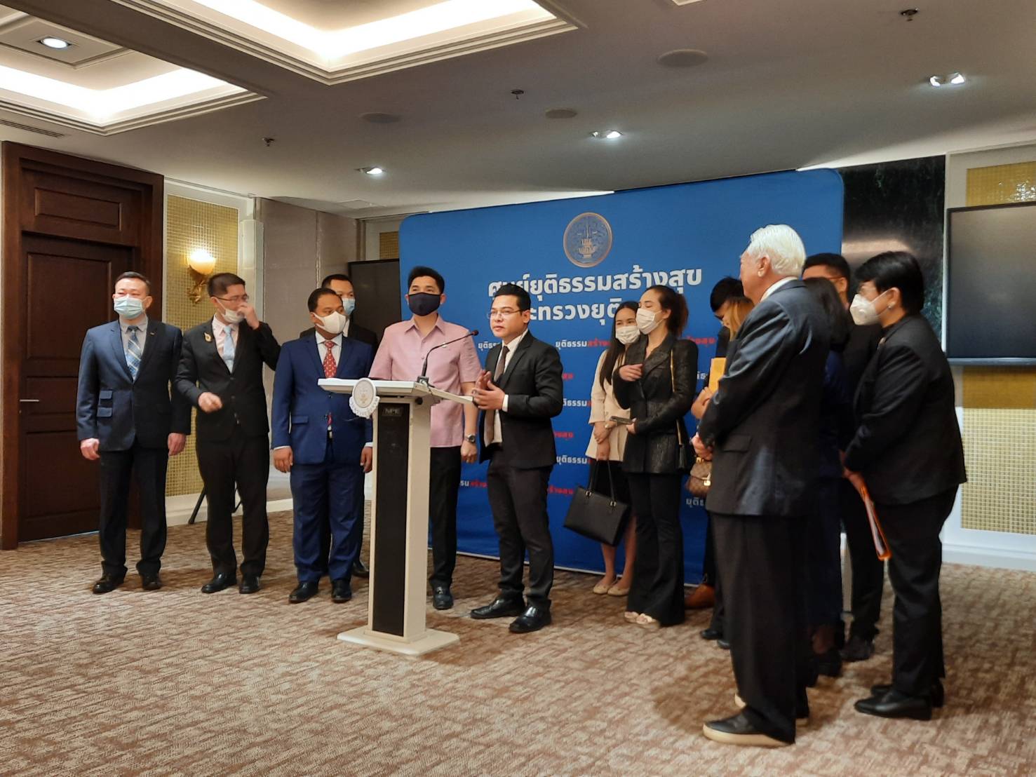 นายพิเชษฐ สถิรชวาล ประธานที่ปรึกษาคณะกรรมาธิการอุตสาหกรรม สภาผู้แทนราษฎร นายมงคลกิตติ์ สุขสินธารานนท์ สมาชิกสภาผู้แทนราษฎร นำผู้เสียหายหลายสิบราย กรณีโอนเงินสั่งซื้อถุงมือยางจากบริษัทเอกชน เสียหายรวม 4 หมื่นล้านบาท แต่ไม่ได้สินค้า เข้าร้องเรียนต่อว่าที่ร้อยตรี ธนกฤต จิตรอารีย์รัตน์ เลขานุการรัฐมนตรีว่าการกระทรวงยุติธรรม (เลขานุการ รมว.ยธ.) เพื่อให้ศุนย์ยุติธรรมสร้างสุขช่วยเหลือ ส่งเรื่องให้ดีเอสไอสืบสวนข้อเท็จจริง