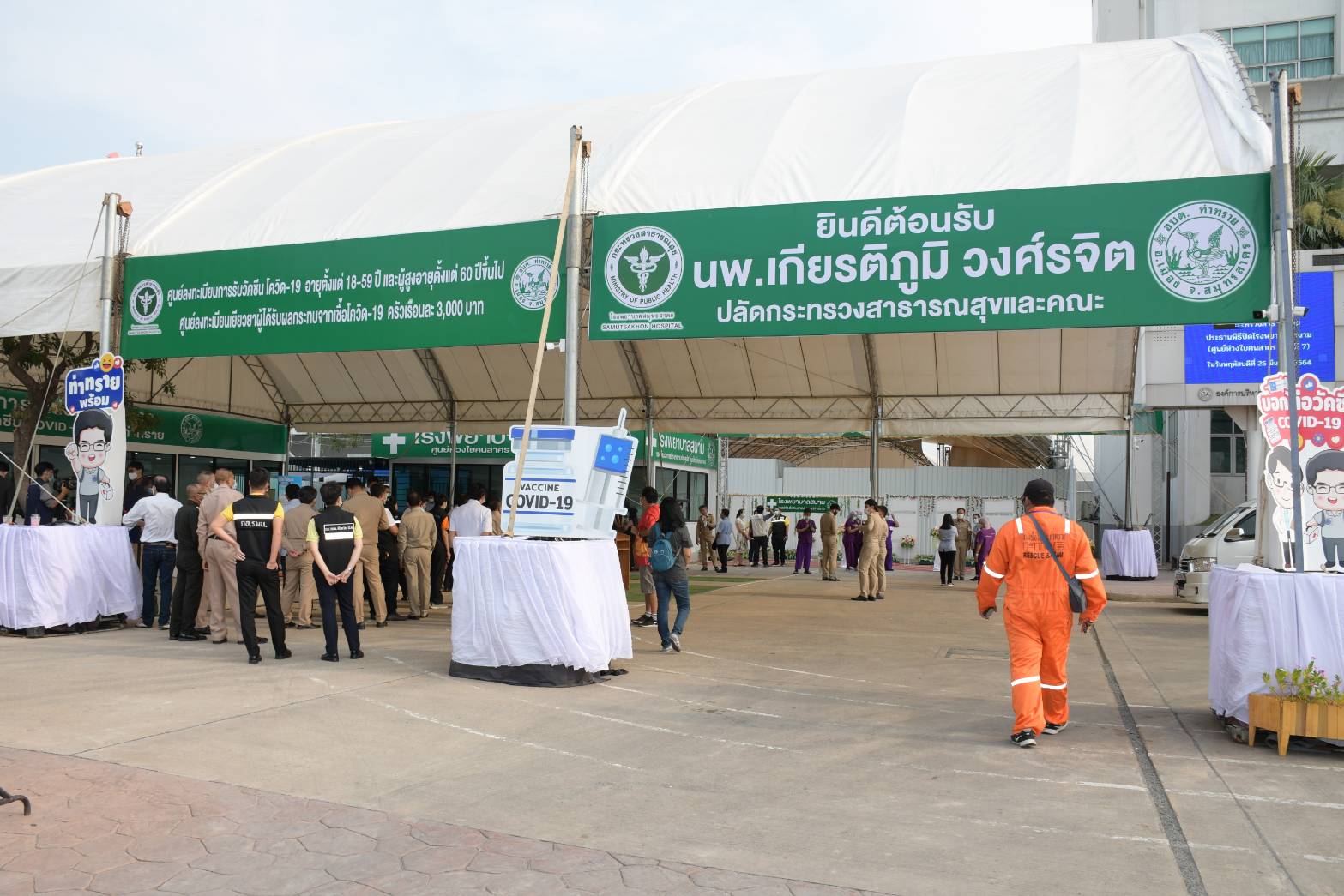 วันนี้ (25 มี.ค.) ที่จ.สมุทรสาคร นพ.เกียรติภูมิ วงศ์รจิต ปลัดกระทรวงสาธารณสุข พร้อมด้วยนายธีรพัฒน์ คัชมาตย์ รักษาราชการแทนผู้ว่าราชการจังหวัดสมุทรสาคร และคณะผู้บริหาร ทำพิธีปิดโรงพยาบาลสนามศูนย์ห่วงใยคนสาครแห่งที่ 7 ณ องค์การบริหารส่วนตำบลท่าทราย อ.เมืองสมุทรสาคร มีขนาด 460 เตียง เปิดรับผู้ติดเชื้อตั้งแต่วันที่ 26 มกราคม–19 มีนาคม 2564 มีผู้ติดเชื้อเข้าใช้บริการทั้งสิ้น 761 คน ซึ่งต.ท่าทรายเป็นพื้นที่พบผู้ติดเชื้อสูงสุด 9,907 คน คิดเป็นเกือบร้อยละ 50 ของผู้ติดเชื้อทั้งหมด และโรงพยาบาลสนามแห่งนี้ได้ปรับเป็นสถานที่ฉีดวัคซีนโควิด 19 ให้แก่ประชาชนใน จ.สมุทรสาคร เริ่มดำเนินการ 11 มีนาคมที่ผ่านมา มีผู้เข้ารับบริการฉีดวัคซีนโควิดไปแล้วกว่า 5,000 คน