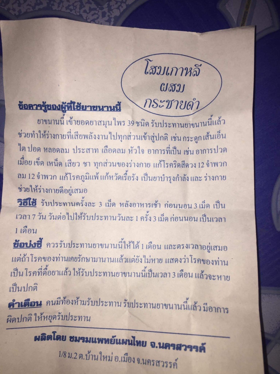 ทั้งนี้ เมื่อตรวจสอบข้อมูลเพิ่มเติม พบว่า อย.เคยมีการแจ้งเตือนภัยผู้บริโภค สำหรับผลิตภัณฑ์ ชื่อ “ยาสมุนไพรอายุวัฒนะ” ที่แสดงเลขทะเบียนผลิตภัณฑ์ไม่ใช่ความจริงและตรวจพบสารสเตียรอยด์ในยาดังกล่าว โดยมีการแสดงชื่อและที่อยู่ของสถานที่ผลิตเช่นเดียวกับผลิตภัณฑ์โสมเกาหลีผสมกระชายดำ ซึ่งสถานที่ดังกล่าว ไม่มีตัวตนอยู่จริง