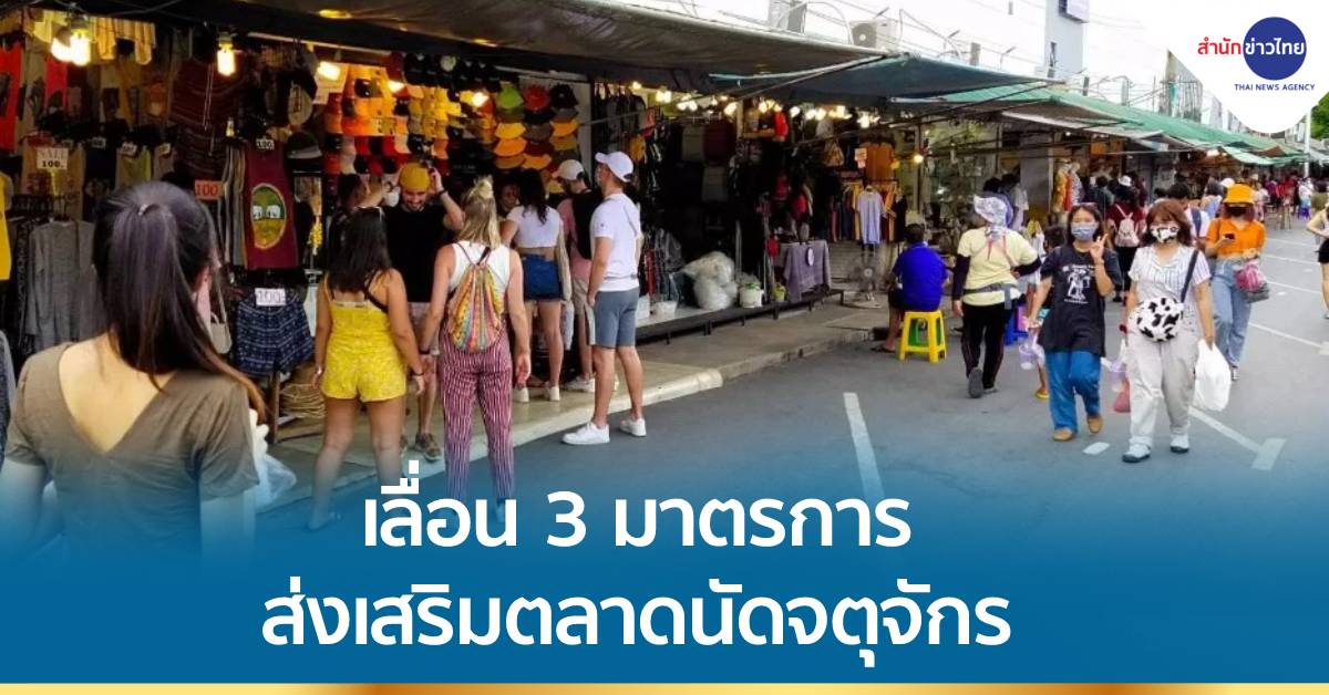 นางวัลยา วัฒนรัตน์ รองปลัดกรุงเทพมหานคร เปิดเผยว่า ตามที่คณะกรรมการบริหารสำนักงานตลาดกรุงเทพมหานครได้พิจารณาในการประชุมครั้งที่ 4/2564 กำหนดมาตรการส่งเสริมการทำการค้าในตลาดนัดจตุจักร ดังนี้ 1.ให้ผู้ค้าแผงค้ากึ่งถาวรสามารถทำการค้าในวันธรรมดาได้โดยไม่ต้องขออนุญาตเพิ่ม คือ ในวันอังคาร พุธ และพฤหัสบดี ประกอบกิจการค้าขายในแผงค้าได้ถึงเวลา 18.00 น. , 2.ในวันศุกร์ เสาร์ และอาทิตย์ ค้าขายในแผงค้าได้จนถึงเวลา 22.00 น. เว้นวันจันทร์ที่ห้ามทำการค้า เพื่อทำความสะอาดพื้นที่และแผงค้ารวมทั้งขุดลอกรางระบายน้ำ , 3.ส่งเสริมและสนับสนุนการค้าให้มากขึ้น โดยการจัดกิจกรรมต่าง ๆ บริเวณรอบหอนาฬิกา โดยกำหนดเริ่มมาตรการดังกล่าวในเดือนเมษายน นั้น