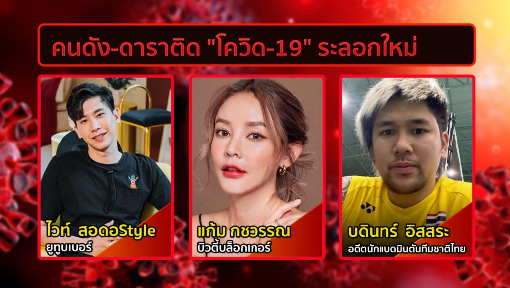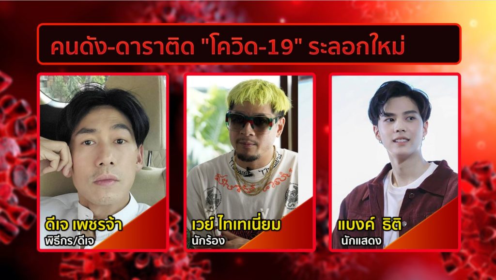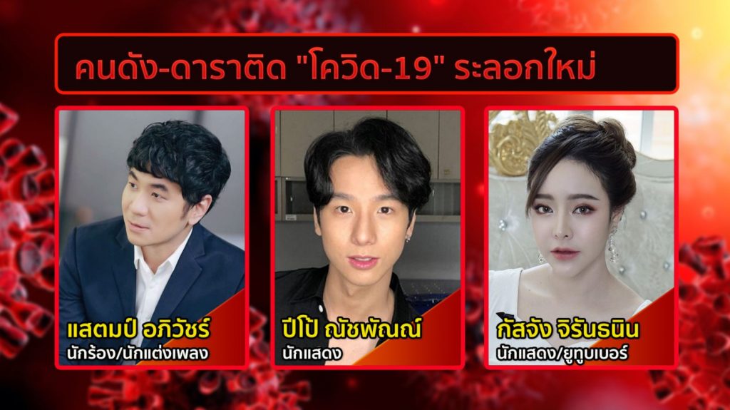 อสมท 8 เม.ย.-จากการแพร่ระบาดวงกว้างครั้งนี้ พบว่ามีคนในหลายวงการที่ติดเชื้อ โดยหากนับจากคลัสเตอร์สถานบันเทิง ก็พบมีบางคนไปเที่ยวทองหล่อ บางคนไปออกคอนเสิร์ต ไปยังสถานที่ที่มีการรวมกลุ่มคนในที่ต่างๆ มาดูกันว่าคนดังที่ติดเชื้อมีใครบ้าง
