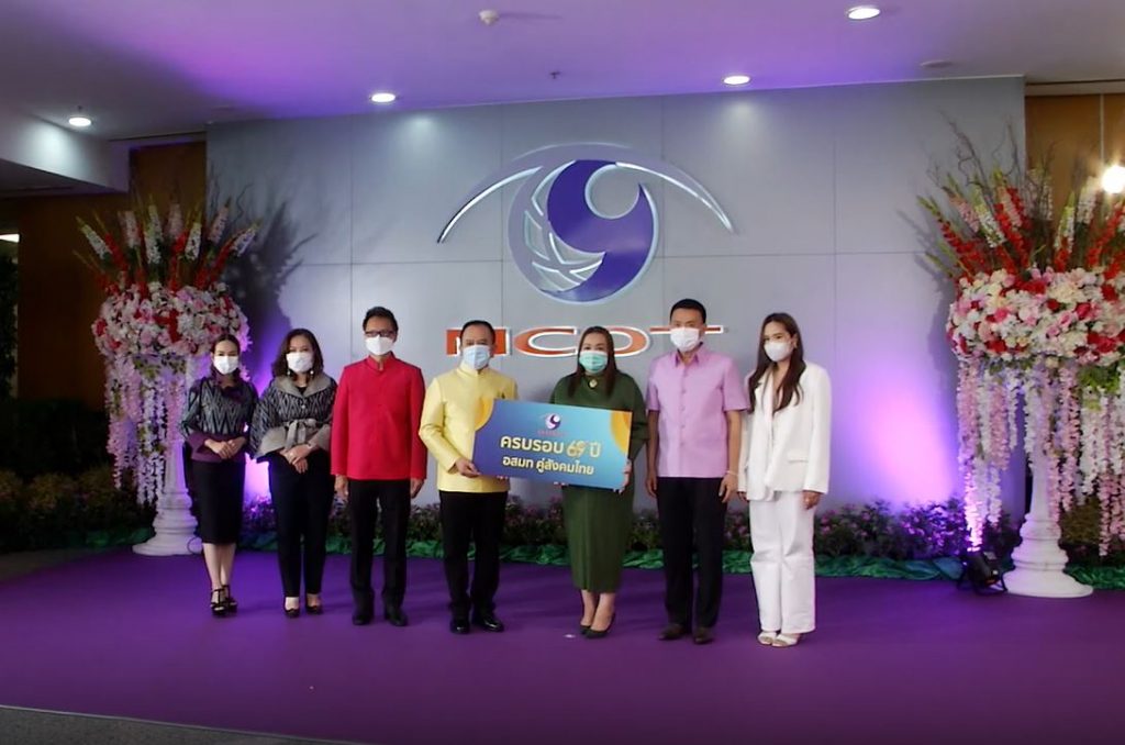 บรรยากาศที่ อสมท หน่วยงานต่างๆ ทยอยส่งดอกไม้มาแสดงความยินดี เนื่องในโอกาสครบรอบ 69 ปี ของการก่อตั้ง ท่ามกลางมาตรการป้องกันโควิด-19 โดยพนักงานและผู้บริหารร่วมพิธีสงฆ์และสักการะหลวงพ่อดำ พระพรหมเพื่อความเป็นสิริมงคล ทั้งนี้จากสถานการณ์โควิด-19 ภายใน โดยเชิญชวนหน่วยงานต่างๆจากทั้ง จากทั้งภาครัฐและเอกชนและประชาชน ร่วมสมทบทุนผ่านมูลนิธิอุทกพัฒน์ในพระบรมราชูปถัมภ์ เพื่อสนับสนุนการดำเนินงานบริหารจัดการน้ำพัฒนาชุมชนอย่างยังยืน เลขที่บัญชี 013-0-22419-7 ธนาคารกรุงไทย สาขาถนนศรีอยุธยา รวมถึงเชิญชวนส่งข้อความร่วมแสดงความยินดีทาง mcottogether.mcot.net.-สำนักข่าวไทย
