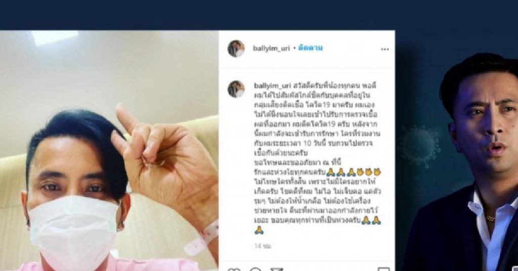 เช่นเดียวกับบอล เชิญยิ้ม ที่โพสต์ภาพพร้อมข้อความผ่านอินสตาแกรม ระบุข้อความว่า ได้ไปสัมผัสใกล้ชิดกับบุคคลที่อยู่ในกลุ่มเสี่ยงติดเชื้อโควิด-19 เมื่อตรวจหาเชื้อก็พบว่าติดโควิด-19 ขณะนี้เข้ารับการรักษาแล้ว และขอให้คนที่ร่วมงานในระยะ 10 วัน ไปตรวจ