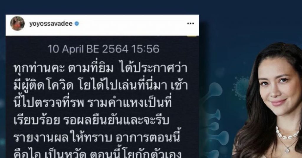 โย ยศวดี ก็เป็นอีกหนึ่งคนดังที่ติดเชื้อโควิด-19 โดยเจ้าตัวประกาศผ่านอินสตาแกรมว่าติดโควิด-19 หลังไปออกกำลังกายในยิมที่มีคนติดเชื้อ ส่วนคุณชายอดัม-ม.ร.ว.เฉลิมชาตรี ยุคล ล่าสุดเจ้าตัวประกาศผ่านเฟซบุ๊กส่วนตัวว่าผลตรวจโควิด-19 ออกมาเป็นบวก คาดว่าน่าจะติดมาจากน้องที่ไปเที่ยวสถานบันเทิงย่านทองหล่อ