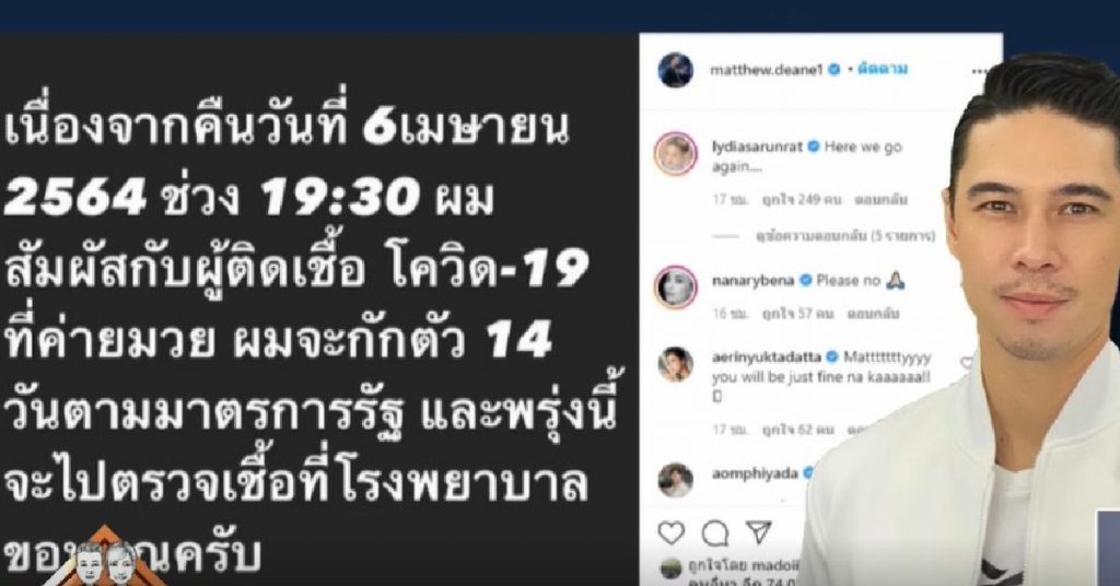 ขณะเดียวกัน แมทธิว ดีน ต้องอยู่ในภาวะเสี่ยงอีกครั้ง และต้องกักตัว เนื่องจากสัมผัสผู้ติดเชื้อ โดยเจ้าตัวโพสต์อินสตาแกรมส่วนตัวว่า