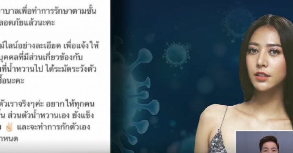 กรุงเทพฯ 11 เม.ย. – “น้ำหวาน รักษ์ณภัค” โพสต์อินสตาแกรมติดเชื้อโควิด-19 หลังร่วมงานปาร์ตี้ที่มีคนติดเชื้อ พร้อมขอโทษคนใกล้ชิด ด้านแมทธิว ดีน ต้องอยู่ในภาวะเสี่ยงอีกครั้งและต้องกักตัว เนื่องจากสัมผัสผู้ติดเชื้อที่ค่ายมวย