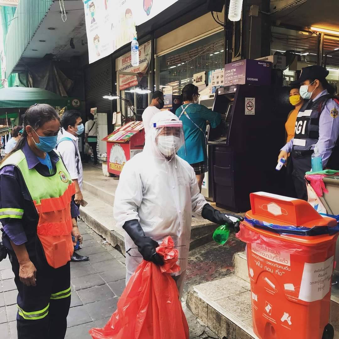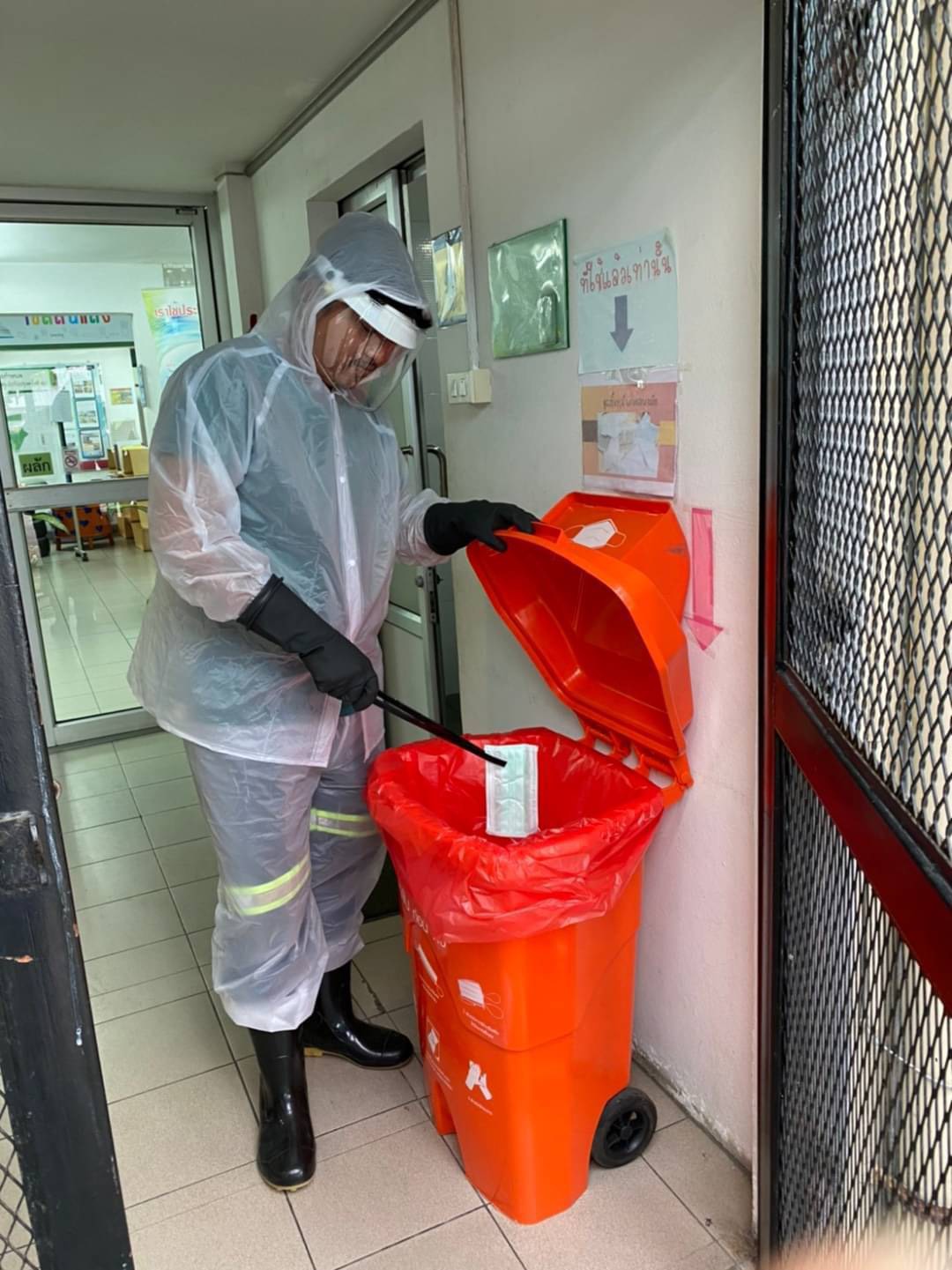 พล.ต.อ.อัศวิน ขวัญเมือง ผู้ว่าราชการกรุงเทพมหานคร กล่าวถึงการจัดการขยะหน้ากากอนามัยที่มีปริมาณเพิ่มสูงขึ้นในช่วงการแพร่ระบาดของโควิด-19 ระลอกใหม่ว่า กรุงเทพมหานครมีปริมาณมูลฝอยติดเชื้อโควิด-19 รวมถึงขยะหน้ากากอนามัยที่เก็บขนและกำจัดจากสถานพยาบาลที่รักษาผู้ป่วยติดเชื้อโควิด-19 และสถานที่สำหรับผู้กักตัว เช่น บ้านพักอาศัย สถานที่กักตัวของรัฐและโรงแรมทางเลือกสำหรับผู้กักตัว ในช่วงการแพร่ระบาดระลอกใหม่ ตั้งแต่วันที่ 15 ธ.ค.63 – 12 เม.ย.64 รวมทั้งสิ้น 1,366.29 ตัน หรือเฉลี่ย 11.48 ตัน/วัน ขณะที่ในช่วงการแพร่ระบาดระลอกเดือน เม.ย. ตั้งแต่วันที่ 1-12 เม.ย.64 ปริมาณมูลฝอยติดเชื้อโควิด-19 มีแนวโน้มเพิ่มขึ้นเป็น 12.92 ตัน/วัน หรือเพิ่มขึ้นเฉลี่ย 1.44 ตัน/วัน คิดเป็นร้อยละ 12.5 อย่างไรก็ตาม เพื่ออำนวยความสะดวกให้ประชาชนในการทิ้งขยะหน้ากากอนามัย กรุงเทพมหานครได้ตั้งวางถังรองรับหน้ากากอนามัยเป็นการเฉพาะ (สีส้ม) พร้อมถุงขยะสีแดงสำหรับใส่หน้ากากอนามัยในพื้นที่สาธารณะประมาณ 1,000 จุด ประกอบด้วย สำนักงานเขต ศูนย์บริการสาธารณสุข กทม. โรงพยาบาลสังกัด กทม. ศาลาว่าการ กทม. (เสาชิงช้า) ศาลาว่าการ กทม. (ดินแดง) โรงเรียนสังกัด กทม. ศูนย์กีฬา กทม. ศูนย์เยาวชน กทม. สถานีดับเพลิง สวนสาธารณะ รวมถึงสถานที่สาธารณะที่เหมาะสม เช่น ตลาด วัด ชุมชน บริเวณหน้าห้างสรรพสินค้า อาคารสำนักงาน และเคหะชุมชนต่าง ๆ พร้อมควบคุมดูแลไม่ให้มีการทิ้งมูลฝอยประเภทอื่นๆ ปะปน โดยหน้ากากอนามัยและมูลฝอยติดเชื้อโควิด-19 ที่จัดเก็บได้จะนำไปกำจัดด้วยวิธีการเผาในเตาเผามูลฝอยติดเชื้อที่ศูนย์กำจัดมูลฝอยอ่อนนุชและหนองแขม