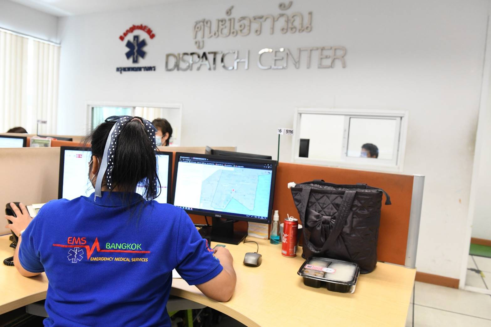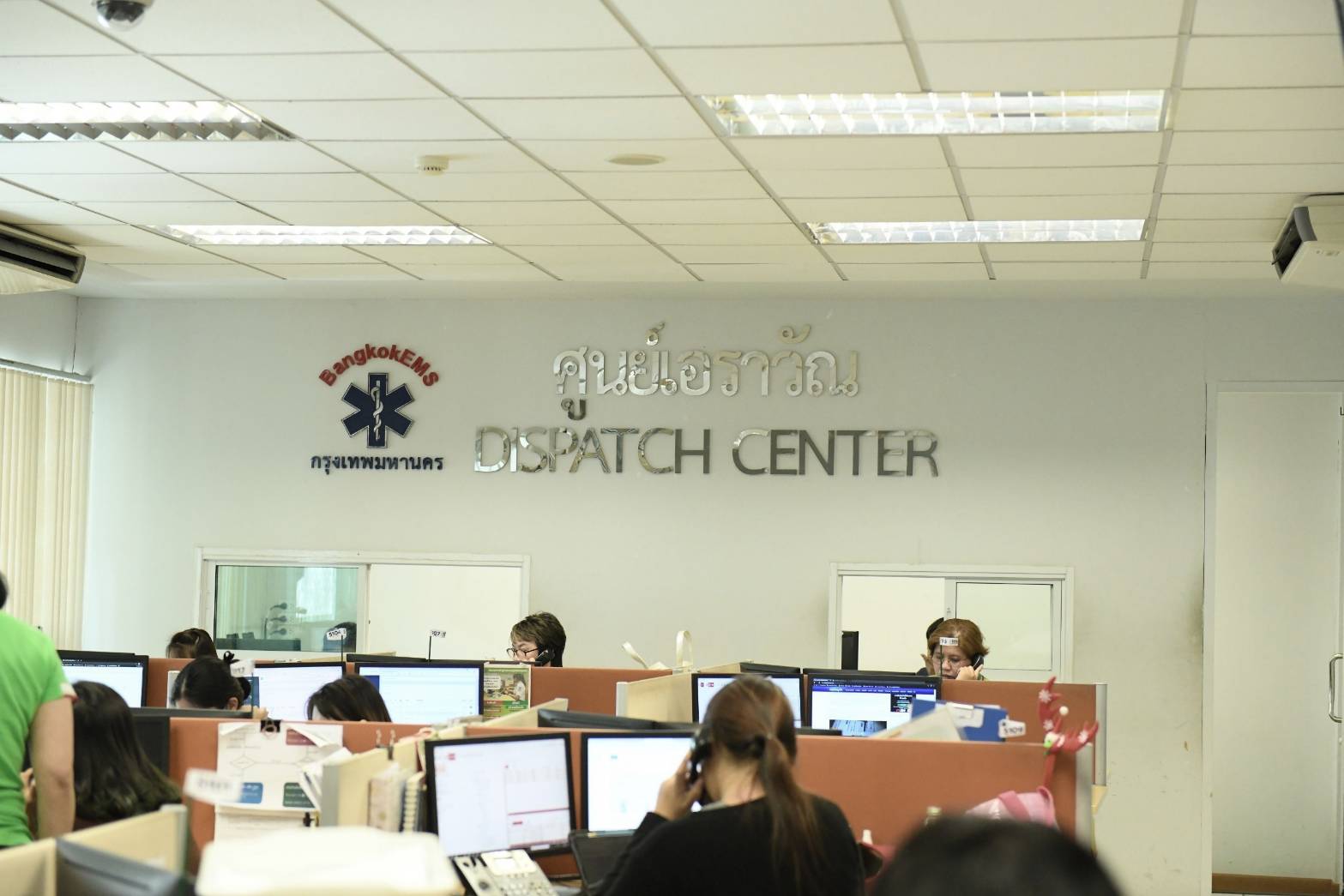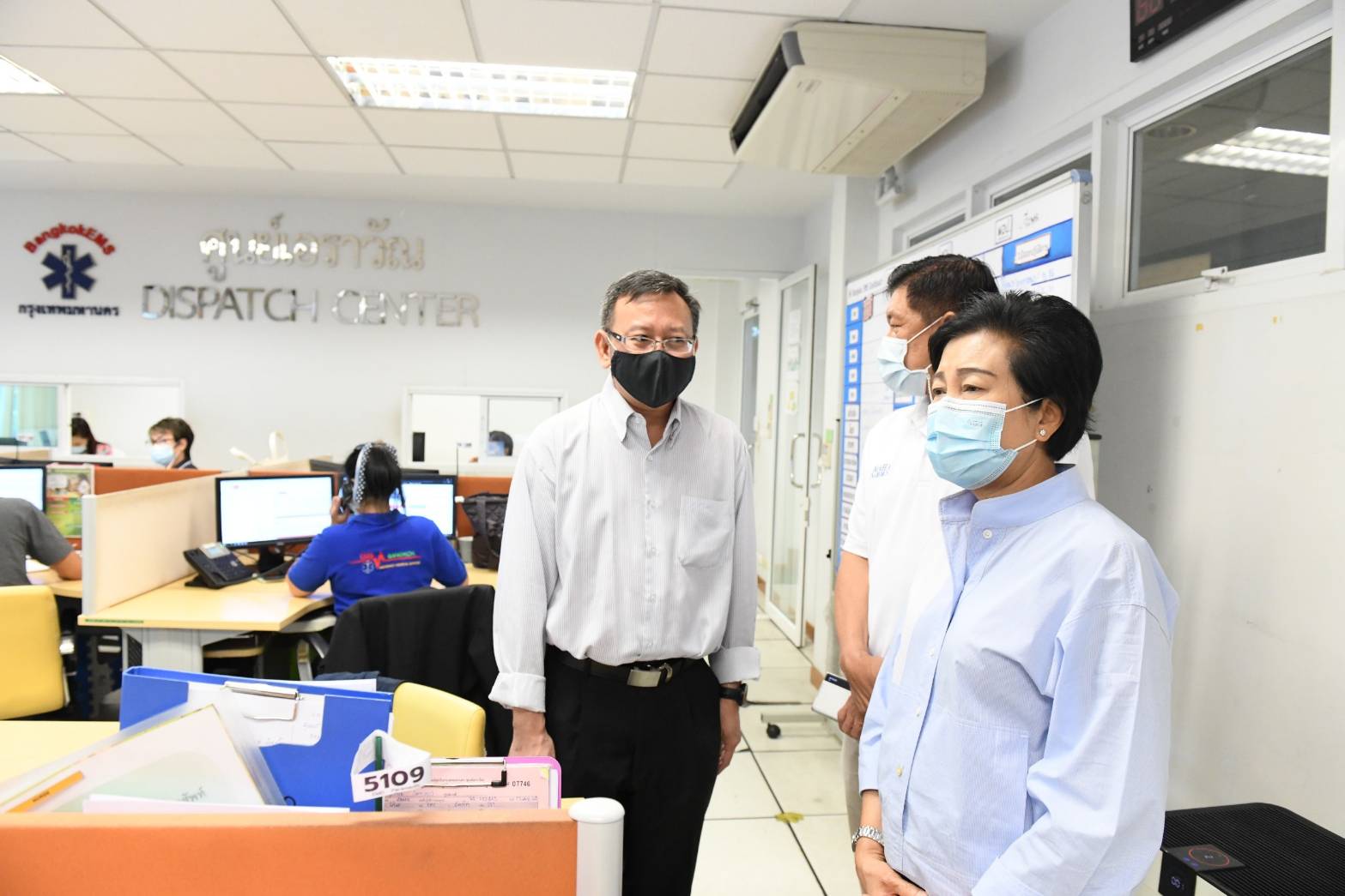 นางศิลปสวย ระวีแสงสูรย์ ปลัดกรุงเทพมหานคร ตรวจเยี่ยมการปฏิบัติงานของศูนย์บริการการแพทย์ฉุกเฉินกรุงเทพมหานคร (ศูนย์เอราวัณ) โดยมี นพ.สุขสันต์ กิตติศุภกร ผอ.สำนักการแพทย์ กทม. และ นพ.พรเทพ แซ่เฮ้ง ผอ.ศูนย์เอราวัณ ให้ข้อมูล