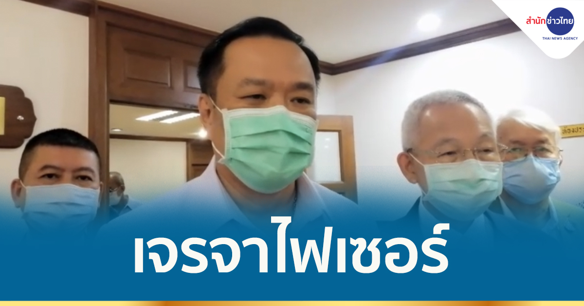 สธ. 21 เม.ย.-รองนายกรัฐมนตรีและรัฐมนตรีว่าการกระทรวงสาธารณสุข เผยเจรจาไฟเซอร์ จัดซื้อวัคซีนเพื่อฉีดให้เด็ก 12 ปีขึ้นไป และพรุ่งนี้เตรียมเจรจาอีก 2-3 บริษัท