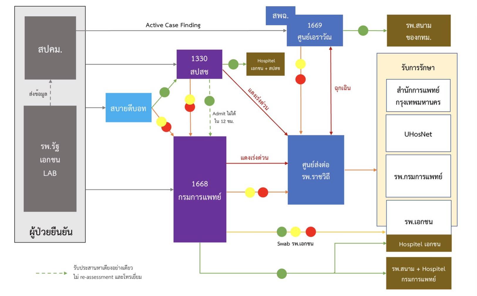 นพ.สมศักดิ์ อรรฆศิลป์ อธิบดีกรมการแพทย์ กระทรวงสาธารณสุข (สธ.)กล่าวถึงสถานการณ์การบริหารเตียง 1668 หลังวันนี้ (23เม.ย.) จำนวนผู้ป่วยติดเชื้อพุ่งสูง 2,070คน ว่า ตัวเลขผู้ป่วยติดเชื้อที่พบเพิ่มสูงขึ้น พบว่า ใน กทม. มากสุด 740 คน ซึ่งการบริหารจัดการเตียงต้องยอมรับว่า พื้นที่กทม.จัดการปัญหาเรื่องเตียงยากมากที่สุด ส่วนใหญ่เพราะการที่ผู้ป่วยไปตรวจแล็บคลินิกเอง ทำให้ไม่มี รพ.รองรับ และการแจ้งผลเมื่อพบการติดเชื้อ เป็นแค่โทรศัพท์แจ้ง ไม่มีใบรับรองการตรวจแล็บดังกล่าว อีกทั้งแล็บตรวจไม่เคยส่งข้อมูลผู้ป่วยติดเชื้อให้ทางการ ทำให้ไม่ทราบข้อมูล ทุกวันรพ.ต้องวิ่งหาคนไข้ ซึ่งเรื่องแบบนี้ไม่ควรเกิดขึ้น และทำให้เกิดปัญหาคนไข้ต้องนอนรอดูอาการอยู่บ้าน ทำให้ความรุนแรงของโรคเพิ่ม เพราะไม่ได้รับยาทันที อาการจากเขียว เป็น เหลือง และ จากเหลืองเป็นแดง