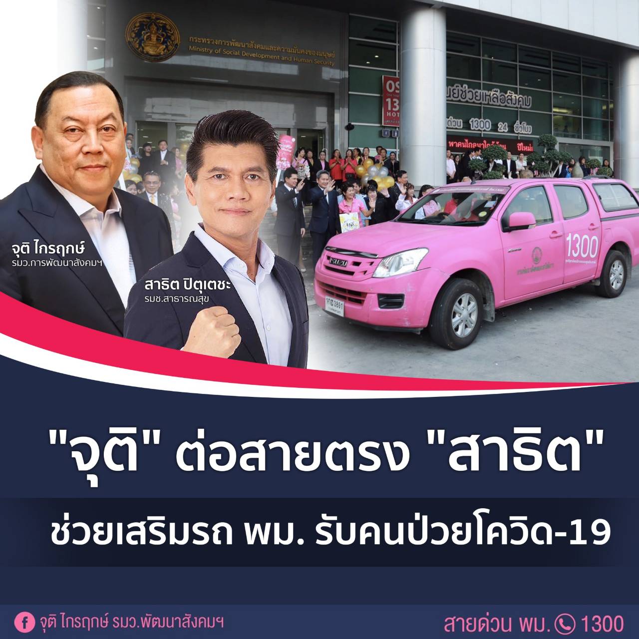 พม.23 เม.ย.- รมว.พม.ต่อสายตรง รมช.สธ. ช่วยเสริมรถของกระทรวง พม.รับส่งผู้ป่วยโควิด-19 ไปโรงพยาบาล