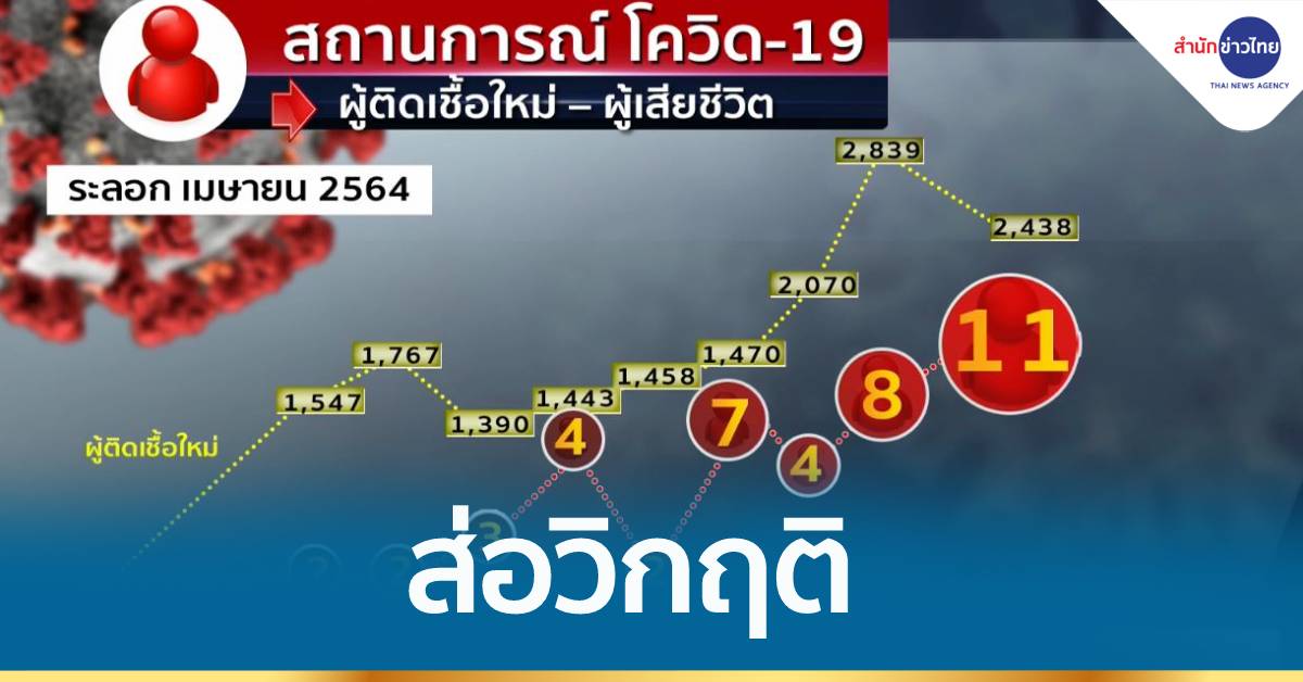 กทม. 25 เม.ย. – โควิดไทยส่อวิกฤติ ยอดเสียชีวิตเฉพาะวันนี้ 11 คน พบผู้ติดเชื้อรายใหม่เพิ่มอีก 2,438 คน ทำให้ยอดผู้ติดเชื้อสะสม 55,460 คน