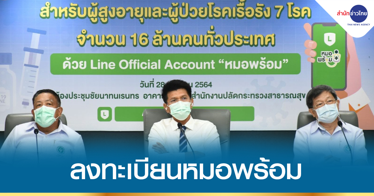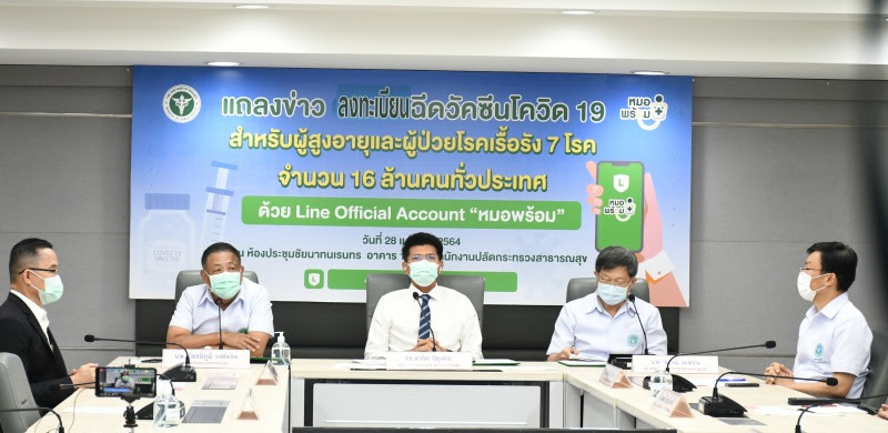 ซึ่งในช่วงเดือน มิ.ย.-ก.ค. จะเริ่มฉีดให้กับกลุ่มผู้ป่วยโรคเรื้อรังและผู้สูงอายุก่อน โดยกลุ่มนี้เริ่มลงทะเบียน 1 พ.ค. ส่วนกลุ่ม 18-59 ปี จะเริ่มฉีดในเดือน ส.ค.-ก.ย. เปิดลงทะเบียน 1 ก.ค. ขั้นตอนลงทะเบียนมี Line หมอพร้อม รองรับ 12 เวอร์ชัน เพียงกรอกเลขบัตรประชาชน 13 หลัก ประวัติการรักษาพยาบาล เลือกสถานพยาบาลเพื่อทำการนัดหมาย จองนัดวันฉีด ทั้งนี้ ยังครอบคลุมไปถึงการติดตามผลแจ้งเตือนในการรับวัคซีนเข็ม 2 อีกด้วย พร้อมออกใบรับรองฉีดวัคซีน นอกจากใน Line หมอพร้อม ยังสามารถลงทะเบียนให้ผู้อื่นในครอบครัวได้อีกด้วย