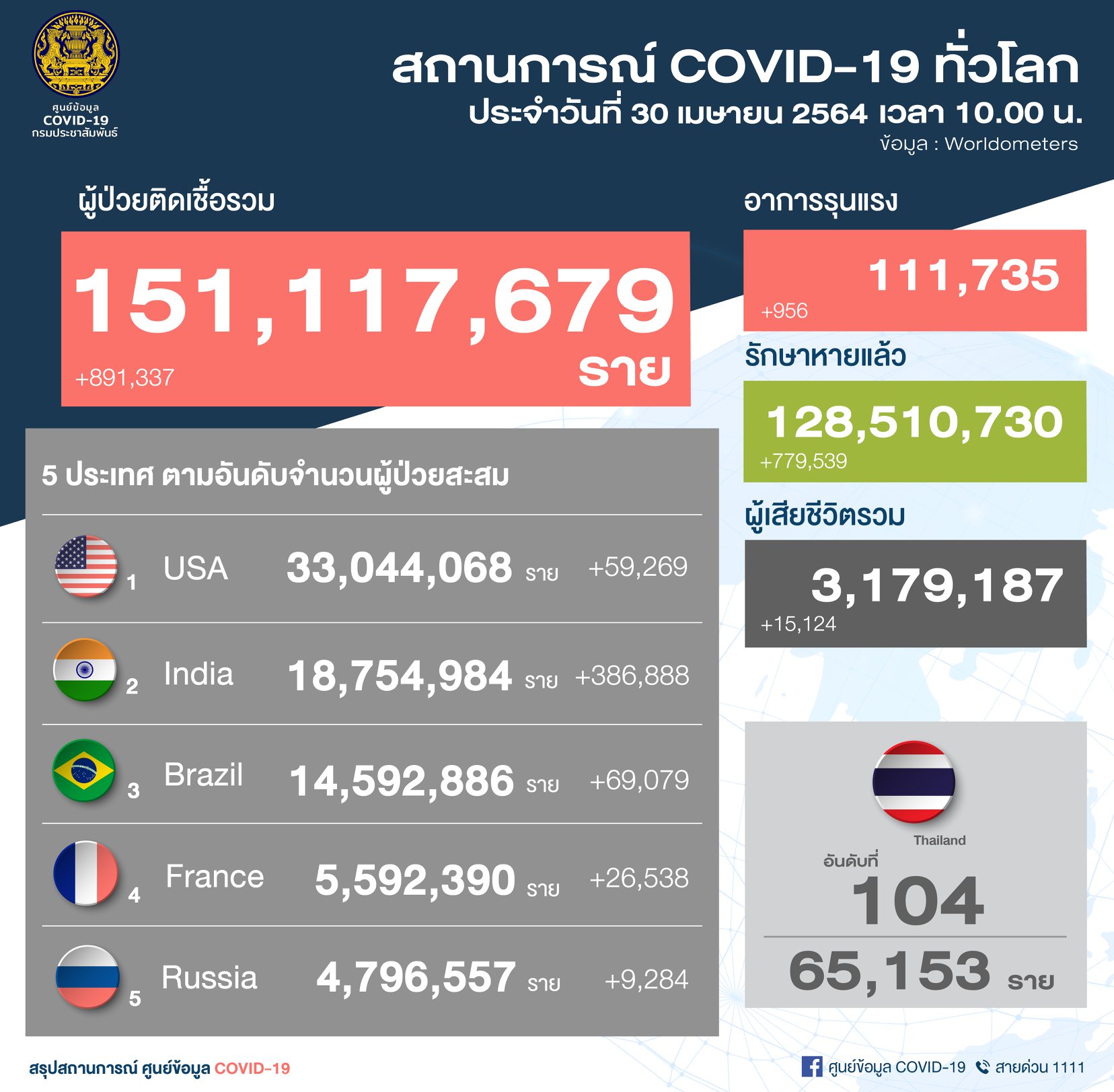 ผู้ป่วยติดเชื้อรวม 151,117,679 ราย