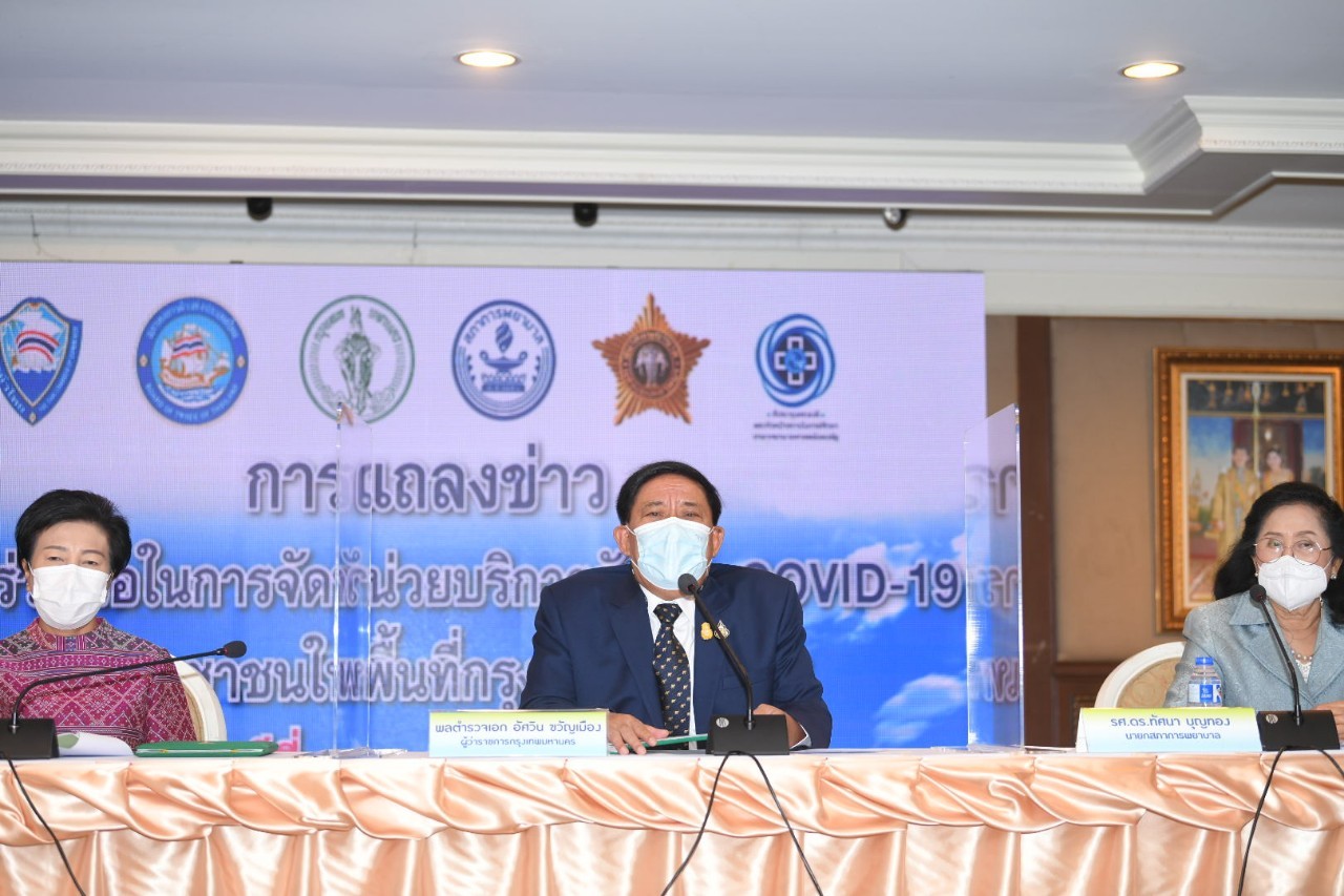 พล.ต.อ.อัศวิน ขวัญเมือง ผู้ว่าราชการกรุงเทพมหานคร (ผู้ว่าฯกทม.) เป็นประธานการแถลงความร่วมมือระหว่าง กทม.หอการค้าไทย และสภาหอการค้าแห่งประเทศไทย ในการจัดหน่วยบริการวัคซีน COVID-19 ให้ประชาชนในพื้นที่กรุงเทพมหานคร โดยมีนางศิลปสวย ระวีแสงสูรย์ ปลัด กทม.นายสนั่น อังอุบลกุล ประธานกรรมการหอการค้าไทย นายญนน์ โภคทรัพย์ กรรมการบริหารหอการค้าไทย รศ.ดร.ทัศนา บุญทอง นายกสภาการพยาบาล และรศ.สุปาณี เสนาดิสัย นายกสมาคมพยาบาลแห่งประเทศไทยในพระราชูปถัมภ์สมเด็จพระศรีนครินทราบรมมราชชนนี ร่วมแถลงข่าว ณ ห้องรัตนโกสินทร์ ศาลาว่าการ กทม.(เสาชิงช้า) เขตพระนคร