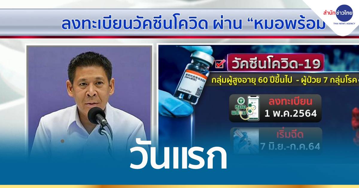 นายธนิตพล ไชยนันทน์ ที่ปรึกษา รมช.สาธารณสุข ให้สัมภาษณ์ผ่านรายการคู่ข่าว เสาร์-อาทิตย์ เกี่ยวกับการลงทะเบียนฉีดวัคซีนโควิด-19 ผ่าน “หมอพร้อม” วันแรก ถึงเวลา 11.00 น. กว่า 107,000 คน มีปัญหาบ้างเป็นรายบุคคล ทยอยแก้ปัญหา โดยมีเวลาลงทะเบียน 36 วัน นับแต่วันนี้จนถึงวันฉีด ในกลุ่มผู้สูงอายุ 60 ปีขึ้นไป และผู้ป่วย 7 กลุ่มโรค. – สำนักข่าวไทย