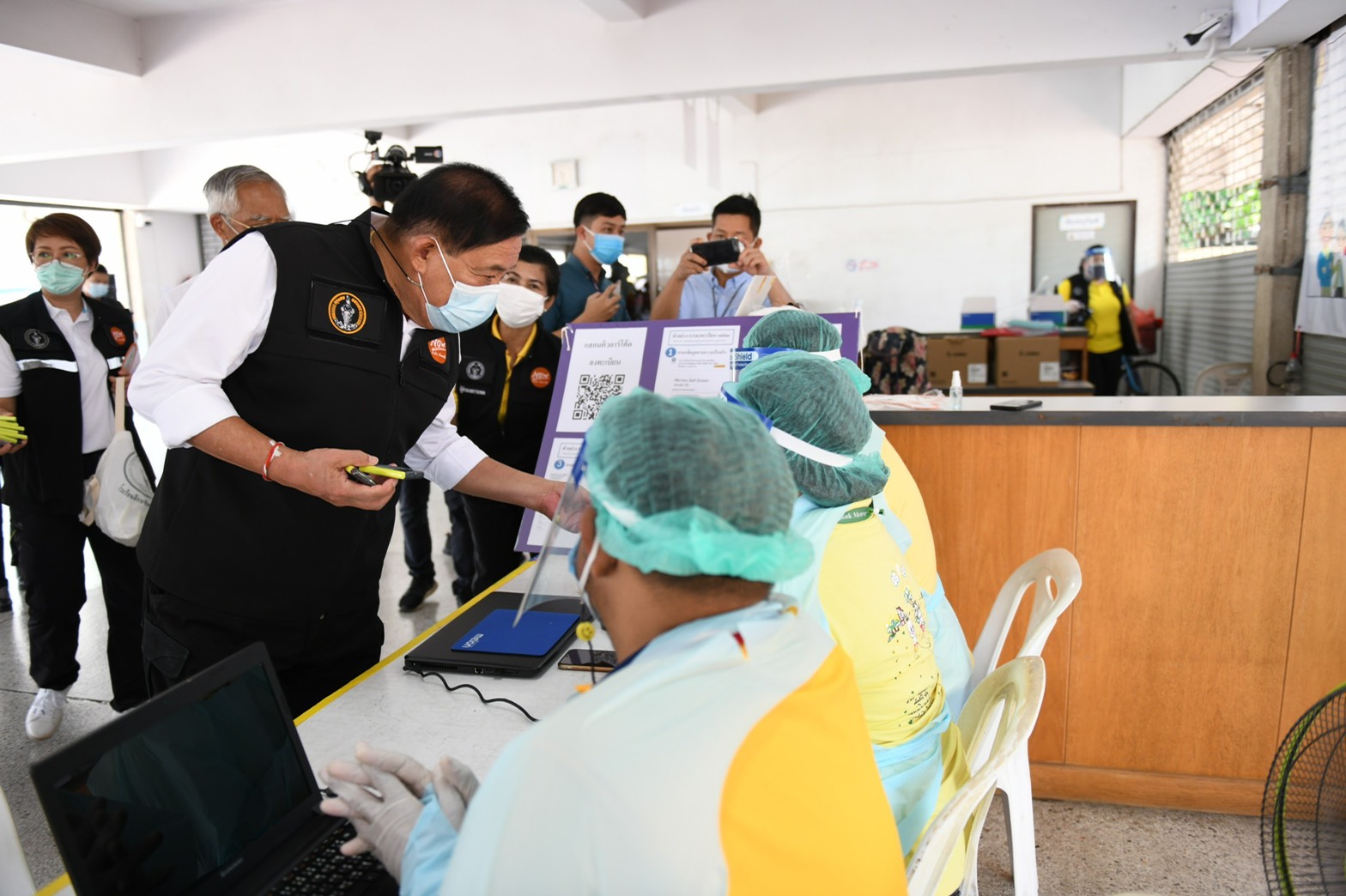 คลองเตย 4 พ.ค.-ผู้ว่าฯ กทม. ลงพื้นที่ตรวจเยี่ยมการให้บริการตรวจหาเชื้อโควิด-19 แก่ประชาชน โดยรถพระราชทานรถเก็บตัวอย่างชีวนิรภัย พร้อมมอบเจลแอลกอฮอล์ ณ บริเวณศูนย์สร้างสุขทุกวัยชุมชนพัฒนาบ่อนไก่ และตลาดคลองเตย