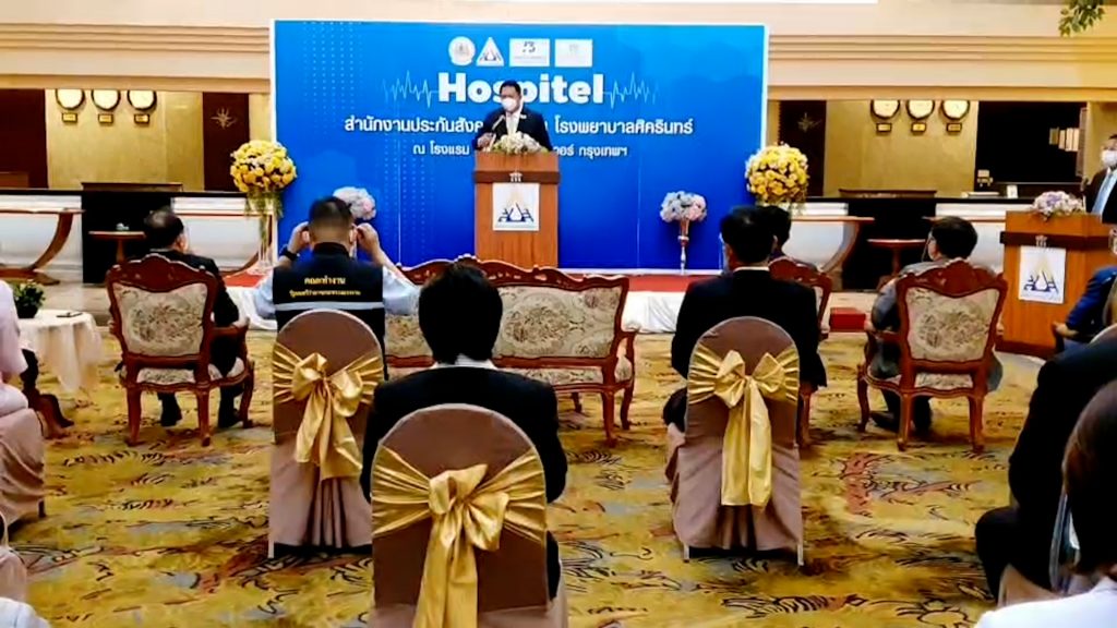 เมื่อวันที่ 4 พฤษภาคม 2564 นายสุชาติ ชมกลิ่น รัฐมนตรีว่าการกระทรวงแรงงาน เป็นประธานเปิดตัว Hospitel ประกันสังคม เพื่อรองรับผู้ประกันตนที่ป่วยโควิด-19 ณ โรงแรมทวินทาวเวอร์ ถนนรองเมือง และโรงแรมเอวาน่า แกรนด์ แอนด์ คอนเวนชั่นเซนเตอร์ ซอยบางนา – ตราด 12/1 ถนนบางนา – ตราด เขตบางนา กรุงเทพมหานคร เป็นสถานที่รองรับการรักษาตัวของผู้ประกันตนติดเชื้อโควิด-19 ที่ไม่แสดงอาการ โดยมี นายสุรชัย ชัยตระกูลทอง ผู้ช่วยรัฐมนตรีประจำกระทรวงแรงงาน นางธิวัลรัตน์ อังกินันทน์ ที่ปรึกษารัฐมนตรีว่าการกระทรวงแรงงาน นายสุเทพ ชิตยวงษ์ เลขานุการรัฐมนตรีว่าการกระทรวงแรงงาน นายสุทธิ สุโกศล ปลัดกระทรวงแรงงาน นายทศพล กฤตวงศ์วิมาน เลขาธิการสำนักงานประกันสังคม เข้าร่วมในครั้งนี้ด้วย โดย รมว.แรงงาน กล่าวว่า รัฐบาลภายใต้การนำของ พล.อ.ประยุทธ์ จันทร์โอชา นายกรัฐมนตรีและรัฐมนตรีว่าการกระทรวงกลาโหม และกระทรวงแรงงานภายใต้การกำกับดูแลของพล.อ.ประวิตร วงษ์สุวรรณ รองนายกรัฐมนตรี ได้ตระหนักถึงสถานการณ์การแพร่ระบาดของโรคโควิด -19 เนื่องจากสภาพปัญหาในปัจจุบันได้เกิดโควิด-19 สายพันธุ์ใหม่ ที่กำลังแพร่ระบาดอยู่ในขณะนี้มีความรุนแรง และมีอัตราการติดเชื้อเพิ่มมากขึ้นอย่างต่อเนื่อง ส่งผลให้จำนวนสถานที่และเตียงรองรับผู้ป่วยที่ติดเชื้อไม่เพียงพอ กระทรวงแรงงานจึงได้เห็นความสำคัญของการแก้ไขปัญหา เพื่อสร้างความปลอดภัยแก่ผู้ประกันตน และเป็นการลดการติดต่อแพร่ระบาดของโควิด-19 จึงได้มีนโยบายให้ตรวจคัดกรองโควิด-19 เชิงรุก เพื่อผู้ประกันตนมาตรา 33,39 และ 40 รวมทั้งจัดหา Hospitel เพื่อรองรับผู้ประกันตนที่ป่วยโควิด-19 เป็นการสร้างความเชื่อมั่นแก่ผู้ประกันตนที่ป่วยให้ได้เข้ารับการรักษา ลดอัตราความเสี่ยงต่อการเสียชีวิต โดยสำนักงานประกันสังคมได้รับความร่วมมือจากสถานพยาบาล โรงแรม ในการจัดตั้ง Hospitel ได้รับความร่วมมือจากโรงพยาบาลในเครือบางปะกอกเป็นอย่างดี