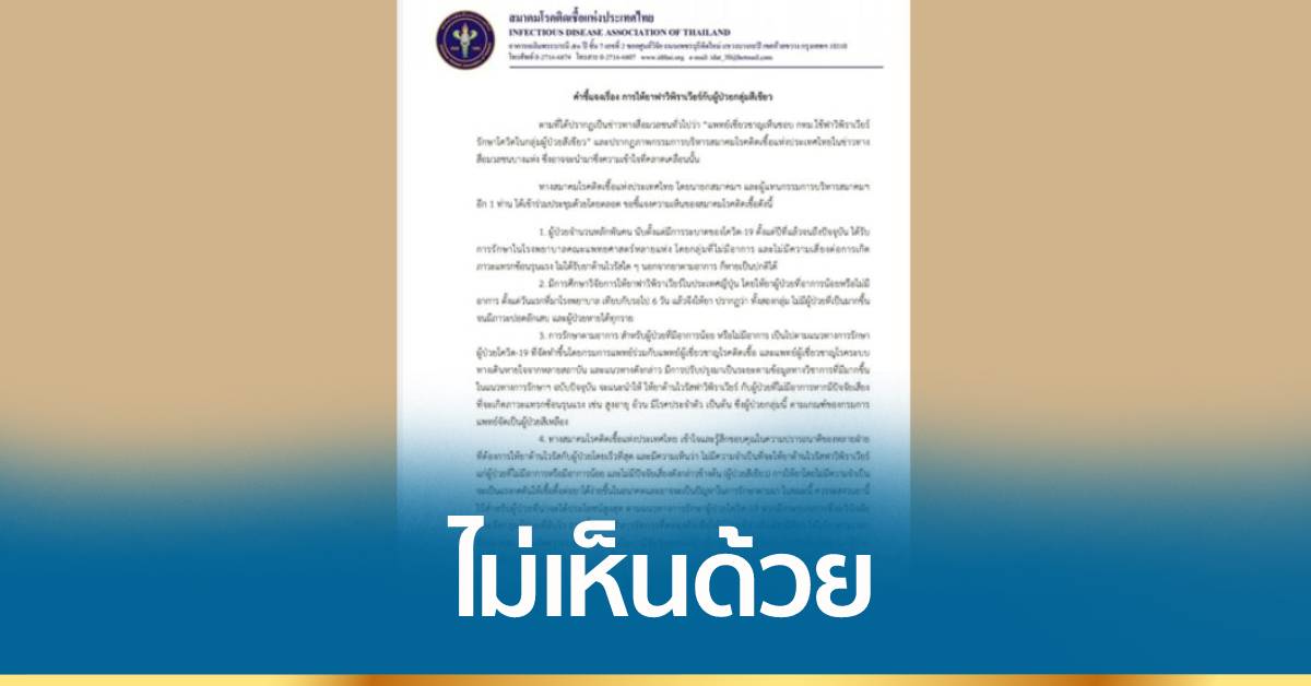 ทางสมาคมโรคติดเชื้อฯ ขอชี้แจงความเห็นของสมาคมโรคติดเชื้อ ดังนี้