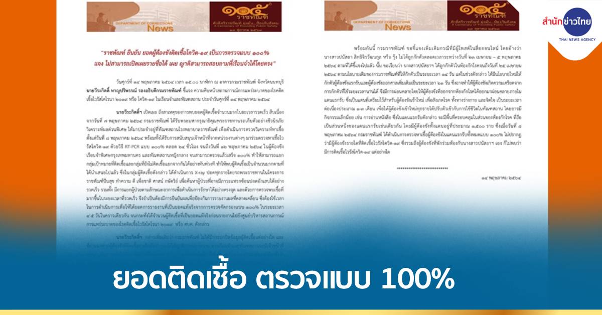 กรมราชทัณฑ์ จ.นนทบุรี 14 พ.ค.-ราชทัณฑ์ยืนยันยอดผู้ต้องขังติดเชื้อโควิด-19 เป็นการตรวจแบบ 100% แจงไม่สามารถเปิดเผยรายชื่อได้ เผยญาติสามารถสอบถามที่เรือนจำได้โดยตรง