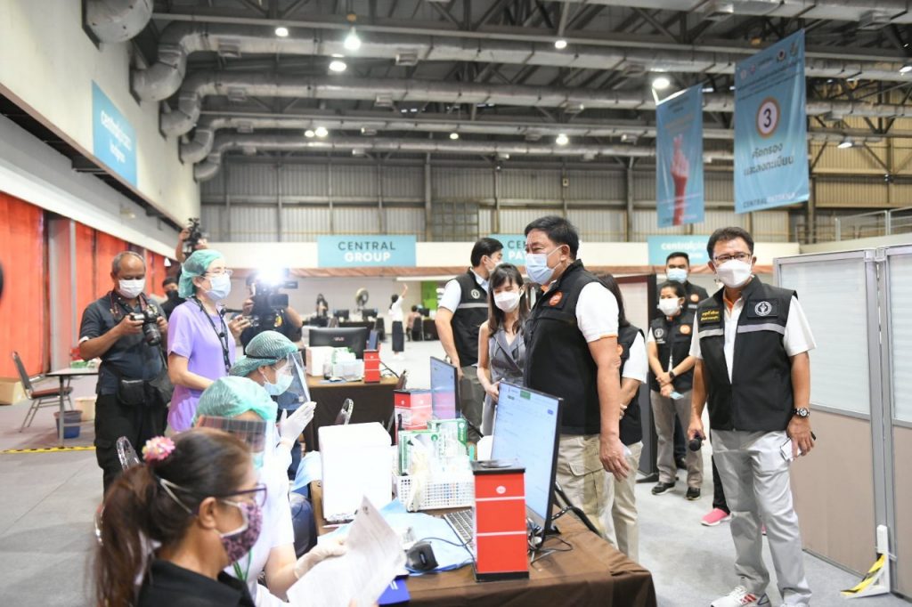 เวลา 09.30 น. พล.ต.อ.อัศวิน ขวัญเมือง ผู้ว่าราชการกรุงเทพมหานคร พร้อมด้วยคณะผู้บริหารกรุงเทพมหานคร ตรวจเยี่ยมการฉีดวัคซีนกลุ่มคนขับรถขนส่งสาธารณะ หน่วยความร่วมมือบริการฉีดวัคซีนโควิด-19 กรุงเทพมหานคร – หอการค้าไทย ณ บริเวณชั้น 3 sky Hall ศูนย์การค้าเซ็นทรัลลาดพร้าว เขตจตุจักร โดยมีผู้บริหารสำนักอนามัย คณะผู้บริหารเขต ผู้บริหารบริษัท เซ็นทรัลพัฒนา จำกัด (มหาชน) และผู้ที่เกี่ยวข้อง ร่วมให้ข้อมูล