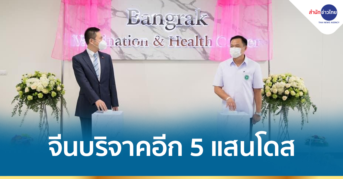 กรุงเทพฯ 20 พ.ค.-รัฐบาลจีนเตรียมบริจาควัคซีนอีก 500,000 โดสให้แก่รัฐบาลไทย พร้อมจัดส่งให้โดยเร็วที่สุด