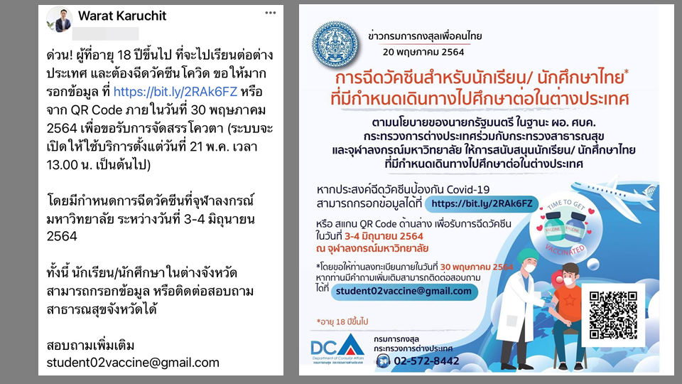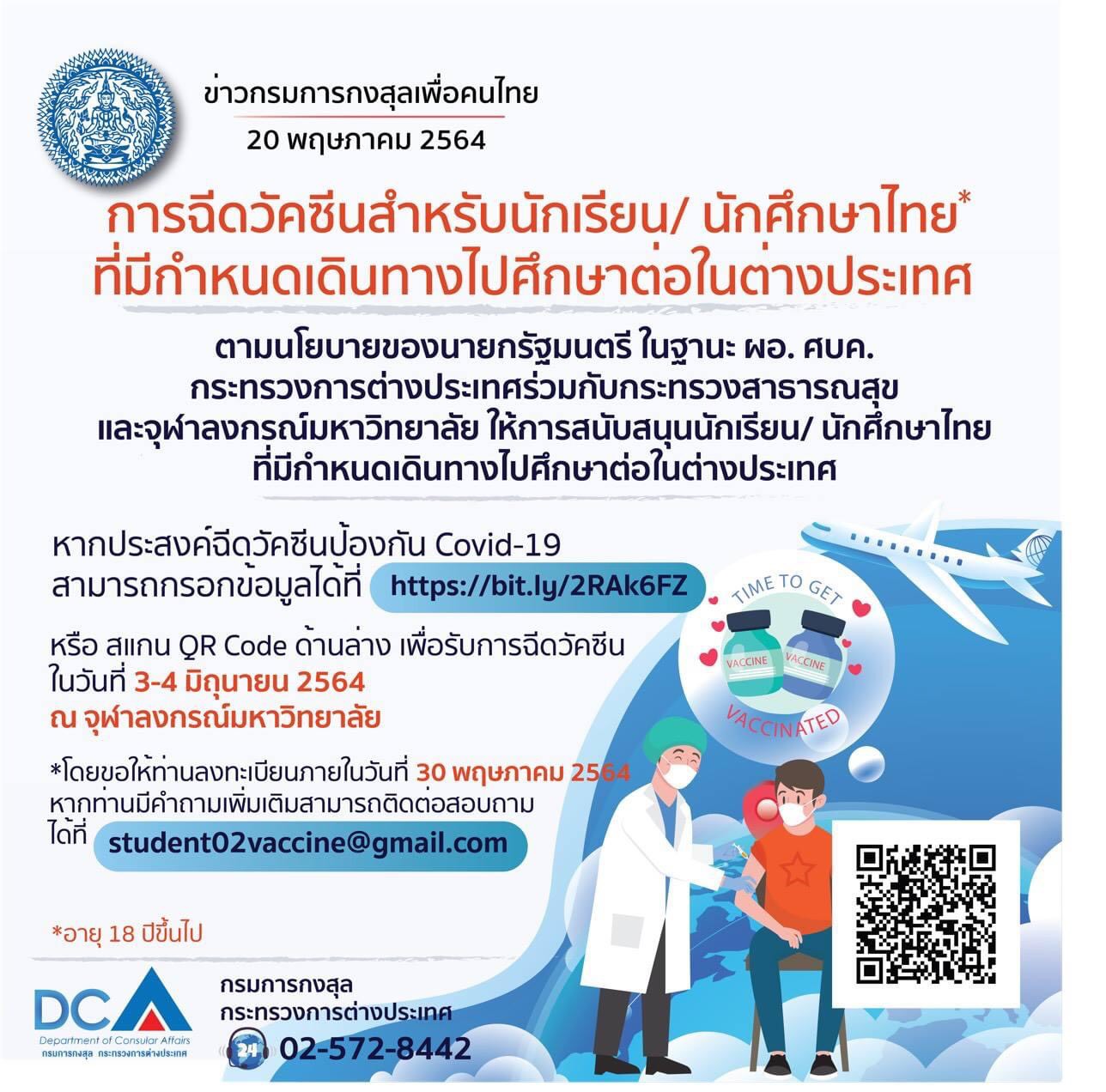ด่วน! ผู้ที่อายุ 18 ปีขึ้นไป ที่จะไปเรียนต่อต่างประเทศ และต้องฉีดวัคซีนโควิด ขอให้มากรอกข้อมูล ที่ https://bit.ly/2RAk6FZ หรือจาก QR Code ภายในวันที่ 30 พฤษภาคม 2564 เพื่อขอรับการจัดสรรโควตา (ระบบจะเปิดให้ใช้บริการตั้งแต่วันที่ 21 พ.ค. เวลา 13.00 น. เป็นต้นไป)