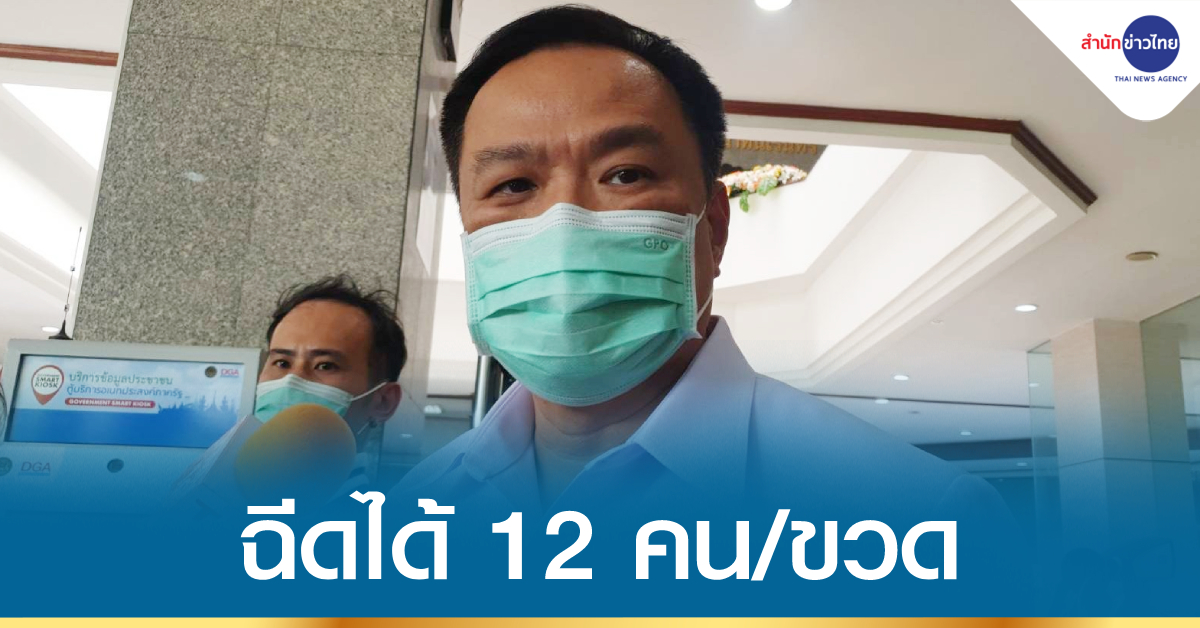 สธ. 21 พ.ค.- รองนายกรัฐมนตรีและ รมว.สาธารณสุข แจงการฉีดวัคซีนแอสตราฯ 1 ขวด 6.5 ซีซี ฉีดได้ 12 คน ยืนยันไม่นำวัคซีนที่ไม่ได้บรรจุมาฉีดให้ประชาชนอย่างแน่นอน