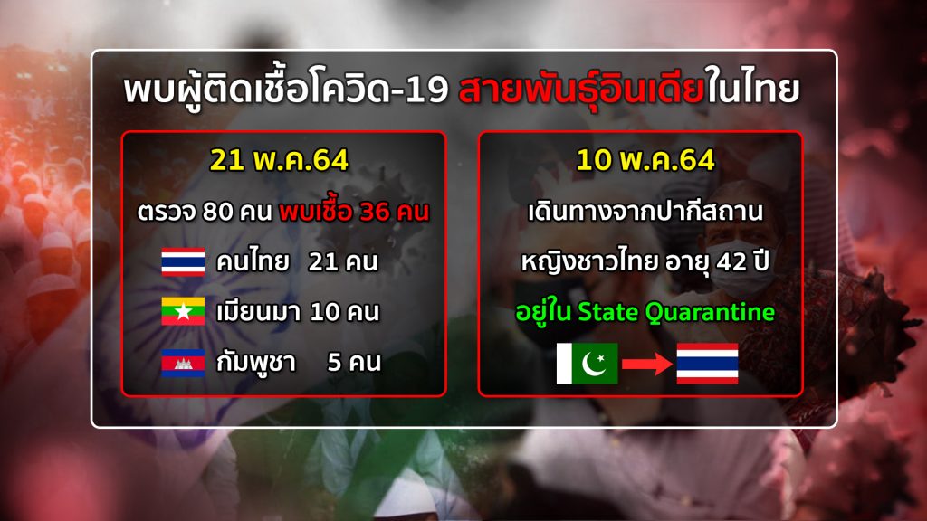 โดยสายพันธุ์อินเดียเข้าไทยครั้งแรก มาจากผู้ที่เดินทางมาจากปากีสถานในสถานที่รัฐกักตัว ก่อนจะมาเจอในแคมป์คนงาน จากนี้จะร่วมกับผู้เชี่ยวชาญในกลุ่มโรงเรียนแพทย์ดำเนินการตรวจค้นหาและเทียบพันธุ์กรรมของเชื้อไวรัสโควิดเพื่อหาที่มาว่าเชื้อดังกล่าวหลุดรอดหรือแพร่มาจากที่ใด