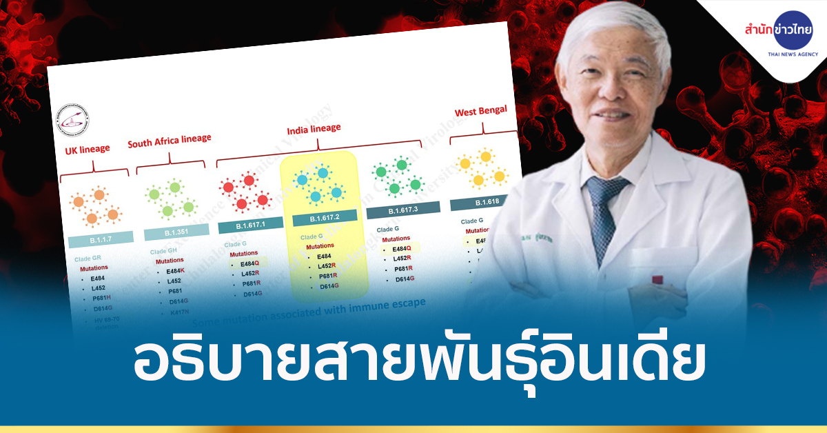 ศ.นพ.ยง ภู่วรวรรณ หัวหน้าศูนย์เชี่ยวชาญเฉพาะทางด้านไวรัสวิทยาคลินิก คณะแพทยศาสตร์ จุฬาลงกรณ์มหาวิทยาลัย เผยกรณีพบสายพันธุ์อินเดียระบาดในประเทศไทย ก่อนหน้านี้ที่ศูนย์ก็พบสายพันธุ์อินเดีย B.1.167.2 จากผู้เดินทางมาจากอินเดีย 8 คน ในสถานกักกัน ซึ่งจะไม่มีผลต่อการระบาดในประเทศไทย เมื่อมีการพบสายพันธุ์อินเดีย ในประเทศไทยจึงจำเป็นที่จะต้องควบคุมให้ได้โดยเร็ว ก่อนที่จะสร้างปัญหาใหญ่โต