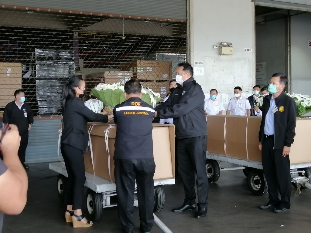 เมื่อวันที่ 26 พฤษภาคม 2564 นายสุชาติ ชมกลิ่น รัฐมนตรีว่าการกระทรวงแรงงาน เดินทางไปยังสนามบินสุวรรณภูมิ จังหวัดสมุทรปราการ เพื่อรับศพแรงงานไทยกรณีเสียชีวิตจากเหตุโจมตีทางอากาศโดยกลุ่มฮามาสในประเทศอิสราเอล โดยมี นายสุทธิ สุโกศล ปลัดกระทรวงแรงงาน นางเธียรรัตน์ นะวะมะวัฒน์ โฆษกกระทรวงแรงงาน นายไพโรจน์ โชติกเสถียร รองปลัดกระทรวงแรงงาน รักษาราชการแทนอธิบดีกรมการจัดหางาน Ms.ETTY MIZRACHI (เอ็ตตี มิชราคี) อัครราชทูต กงสุลประจำสถานเอกอัครราชทูตอิสราเอล พร้อมด้วยผู้บริหารระดับสูงกระทรวงแรงงาน เข้าร่วมในครั้งนี้ด้วย ซึ่งสถานเอกอัครราชทูต ณ กรุงเทลอาวีฟ ได้จัดพิธีไว้อาลัยและส่งศพนายวีรวัฒน์ การุญบริรักษ์ และนายสิขรินทร์ สงำรัมย์ แรงงานไทยจากนิคมเกษตร (โมชาฟ) โอฮาด 2 ราย ที่เสียชีวิตจากจรวดโจมตีเมื่อวันที่ 18 พฤษภาคมที่ผ่านมา ณ ท่าอากาศยานแบนกูเรียน ในโอกาสนี้ ผู้เข้าร่วมพิธีได้ยืนสงบนิ่งและจุดเทียนไว้อาลัยให้แก่ผู้เสียชีวิต ก่อนที่โลงศพของเสียชีวิตจะถูกลำเลียงไปยังเครื่องบินของสายการบิน EI AI เที่ยวบินที่ LY081 ซึ่งเป็นเที่ยวบินอำนวยความสะดวกนำคนไทยในอิสราเอลกลับประเทศไทยที่สถานเอกอัครราชทูตฯ จัดขึ้นและได้เดินทางออกจากท่าอากาศยานเบนกูเรียนเวลา 22.00 น. ของวันที่ 25 พ.ค.64 และมาถึงท่าอากาศยานสุวรรณภูมิในวันนี้ (26 พ.ค.64) เวลา 12.30 น.โดยศพของผู้เสียชีวิตทั้ง 2 รายจะถูกนำส่งถึงภูมิลำเนาที่จังหวัดเพชรบูรณ์และบุรีรัมย์ทันทีที่เดินทางถึงท่าอากาศยานสุวรรณภูมิ นอกจากนี้ นางสาวพรรณนภา จันทรารมย์ เอกอัครราชทูต ณ กรุงเทลอาวีฟ ยังได้ดำเนินการจัดให้แรงงานจากโมชาฟโอฮาดที่ได้รับผลกระทบจากการโจมตีด้วยจรวดเมื่อวันที่ 18 พฤษภาคมที่ผ่านมา จำนวน 18 ราย ซึ่งในจำนวนดังกล่าวรวมถึงผู้ได้รับบาดเจ็บจากเหตุการณ์ดังกล่าว 2 ราย ได้แก่ นายจักรี รัตพลทีและนายธนดล ขันธชัย เดินทางกลับประเทศไทยด้วยเที่ยวบินนี้ด้วย