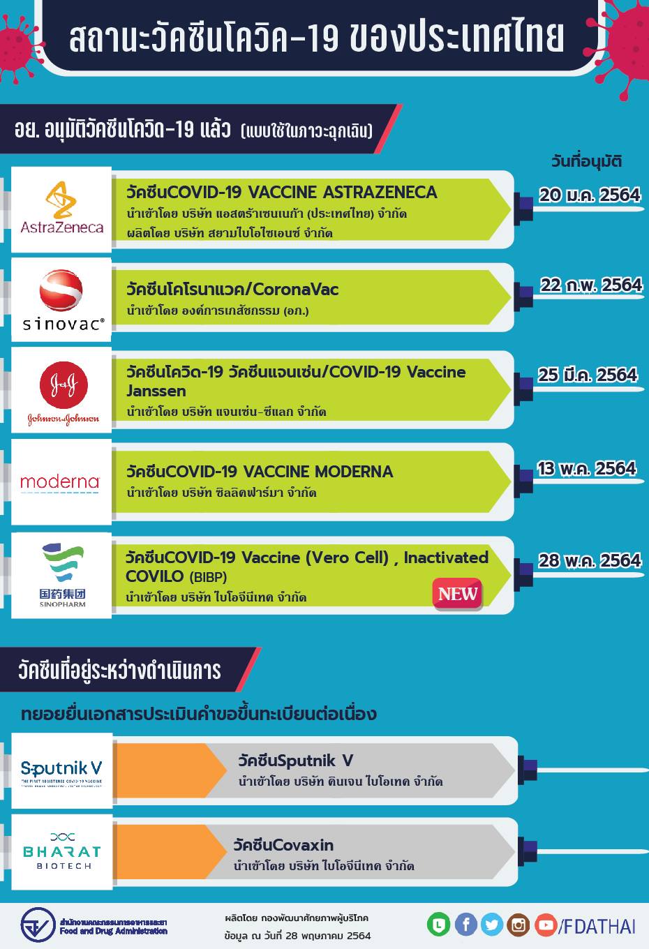 ทั้งนี้ ก่อนหน้านี้สำนักงานคณะกรรมการอาหารและยา ได้อนุมัติวัคซีนโควิด-19ไปแล้ว 4รายการ ได้แก่