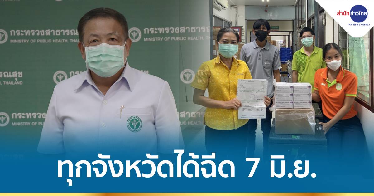 กรุงเทพฯ 3 มิ.ย.-ปลัดกระทรวงสาธารณสุข ยันทุกจังหวัดมีวัคซีนโควิด-19 ฉีดประชาชนวันที่ 7 มิ.ย.นี้ เผยทยอยจัดส่งวัคซีนทั้งแอสตราเซนเนกาและซิโนแวคแล้ว สัปดาห์นี้รวม 2 ล้านโดส จัดส่งพื้นที่ห่างไกลก่อน หลายจังหวัดได้รับแล้ว บางพื้นที่อยู่ระหว่างการขนส่ง