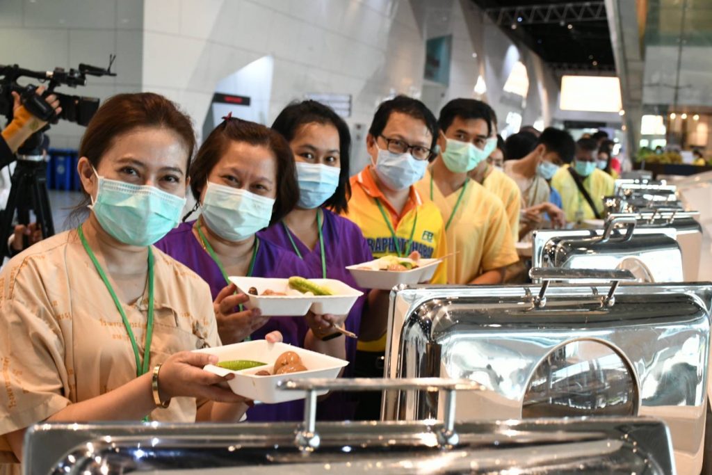 นนทบุรี 3 มิ.ย. – ในหลวง-พระราชินี พระราชทานอาหารแก่บุคลากร รพ.บุษราคัม เนื่องในวันเฉลิมพระชนมพรรษา สมเด็จพระนางเจ้าฯ พระบรมราชินี