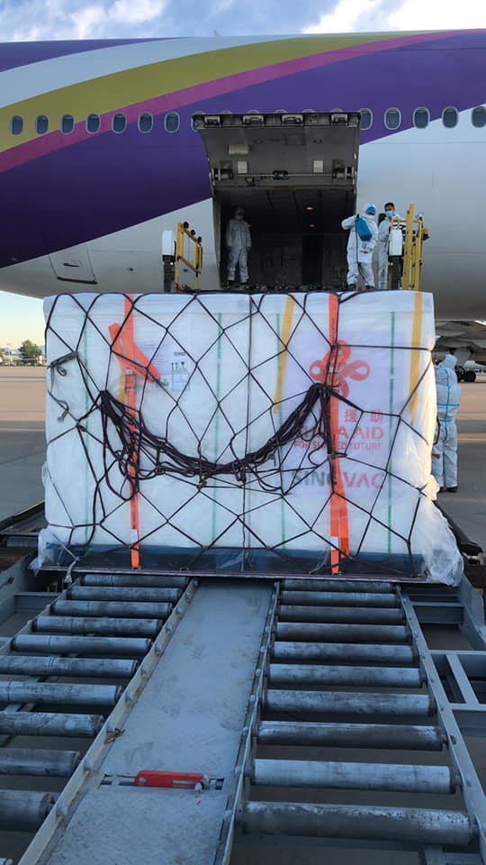 วันนี้ (5 มิ.ย.) วัคซีนซิโนแวค ลอต 2 ที่รัฐบาลจีนบริจาคให้แก่รัฐบาลไทยจำนวน 500,000 โดส ได้ส่งมาถึงประเทศไทยแล้ว ปัจจุบันรัฐบาลจีนได้บริจาควัคซีนป้องกันโควิด-19ให้แก่ประเทศไทย รวมทั้งสิ้น 1 ล้านโดส
