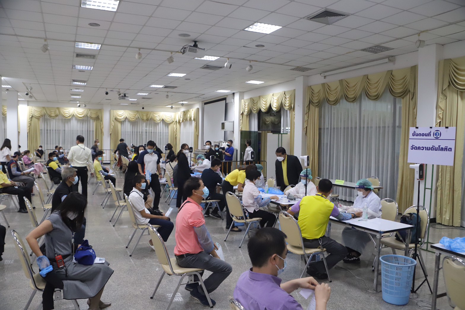 อว. 7 มิ.ย.- อว.เปิดฉีดวัคซีนป้องกันโควิด วันแรก 11 จุดคึกคัก บรรยากาศราบรื่น เรียบร้อย รวมกำลังการฉีดได้ 30,000-50,000 โดส/วัน “เอนก” ลงพื้นที่ตรวจที่ ม.รามคำแหง เผยฉีดได้ 2 พันคน/วัน