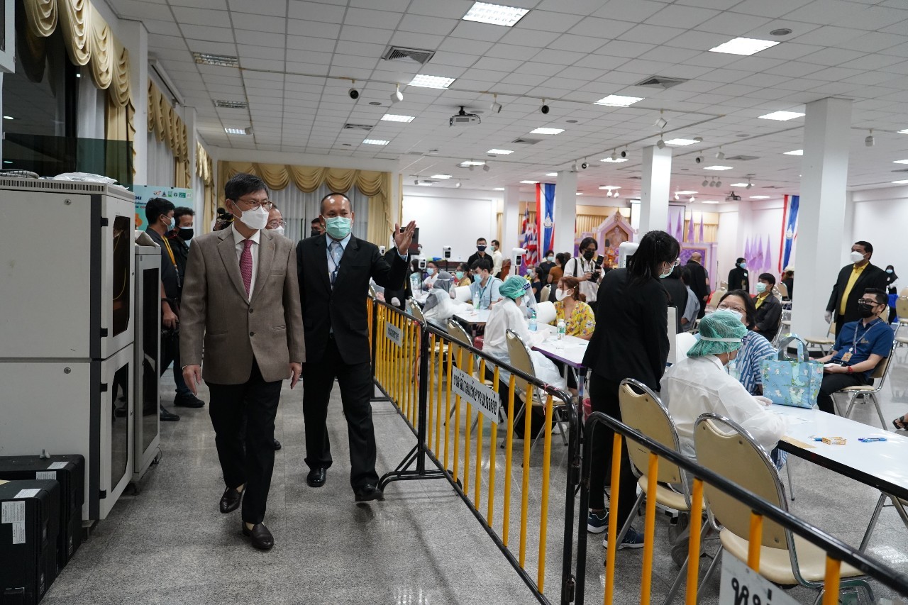ขณะที่มหาวิทยาลัยเกษตรศาสตร์ (มก.) ซึ่งเป็นอีก 1 ใน 11 จุดฉีดวัคซีนของ อว. ศ.ดร.นพ.สิริฤกษ์ ทรงศิวิไล ปลัด อว. ได้เดินทางไปตรวจเยี่ยมศูนย์บริการฉีดวัคซีน KU สู้ COVID-19 รองรับบุคลากร นิสิต มก. นักศึกษามหาวิทยาลัยใกล้เคียง หน่วยงานกระทรวง อว. หน่วยงานอื่นทั้งภาครัฐ-เอกชน และชุมชนโดยรอบ