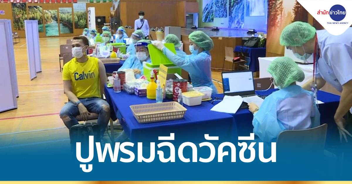 กรุงเทพฯ 7 มิ.ย.- วันแรกการปูพรมฉีดวัคซีนให้กับผู้ประกันตนในพื้นที่กรุงเทพฯ รวม 45 จุด ที่อาคารกีฬาเวสน์ 1 สนามกีฬาไทย-ญี่ปุ่น ดินแดง พบว่าหลายคนตื่นเต้นเดินทางมารอกันตั้งแต่เช้า ขณะที่นายกรัฐมนตรีเดินทางมาตรวจเยี่ยมพร้อมให้คำมั่นคนไทยทุกคนจะมีวัคซีนฉีด